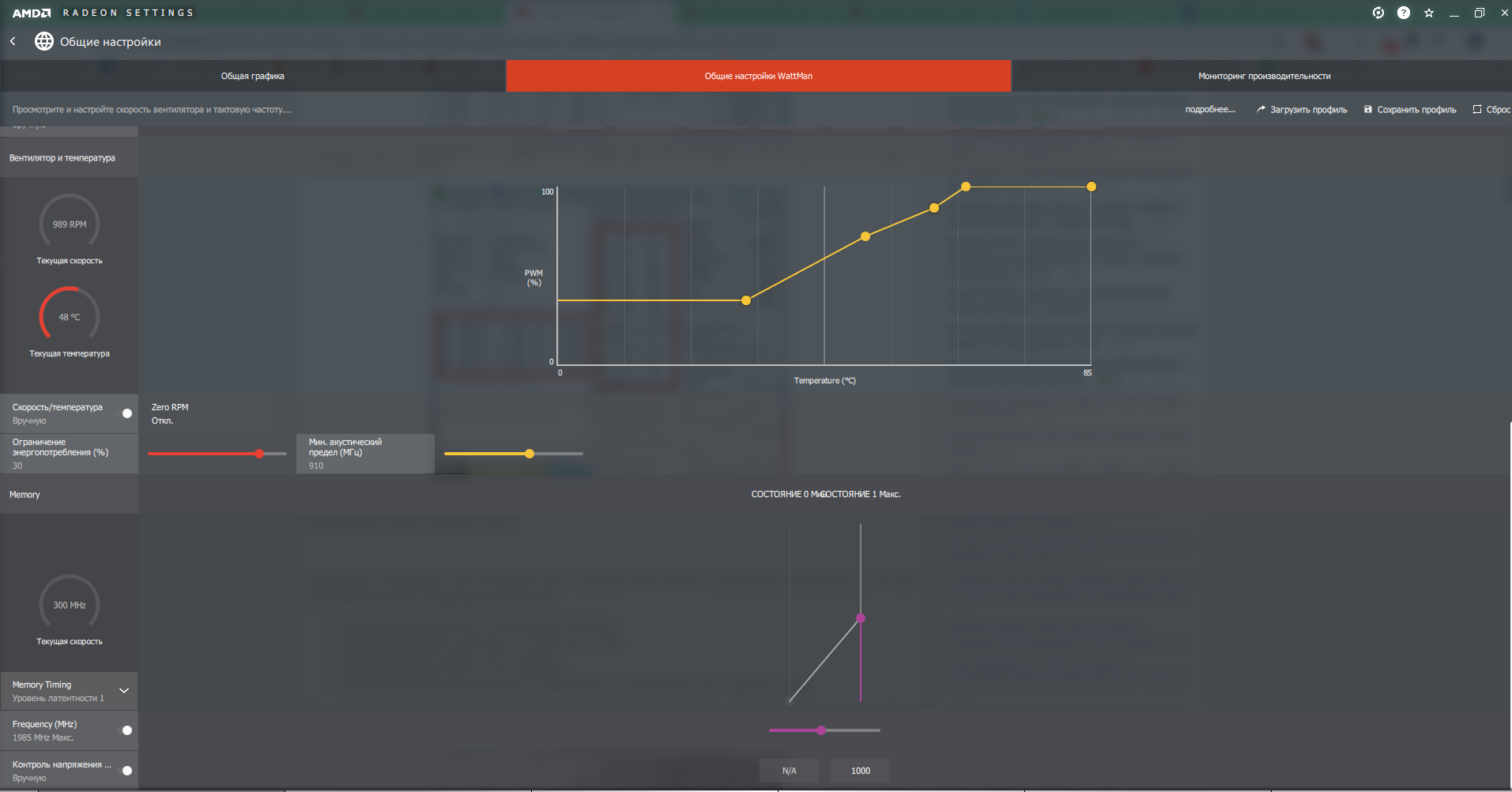 Q: Какое напряжение на чипе и контроллере памяти(КП) должны быть? A: Напряжение на чипе должно быть не меньше напряжения на контроллере памяти. Ваттман (и прочие утилиты) регулирует напряжение на КП, хотя написано что это напряжение на памяти!