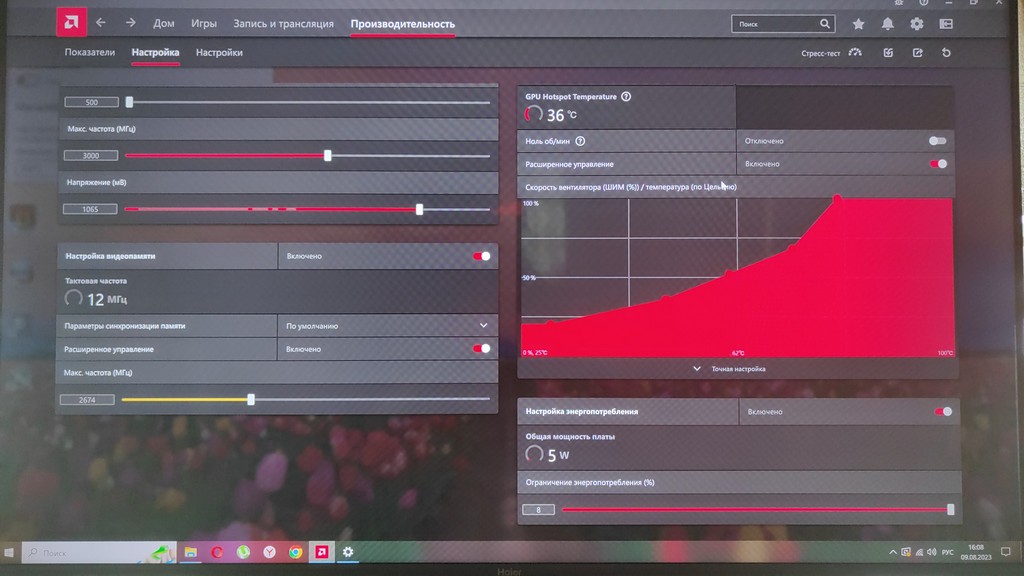 Взял себе для игр. Решил поиграться, раз дети выросли. Не врубаюсь с настройками видюхи. Максимальную частоту ГП никогда не видел. При запуске бенчмарка в Cyberpunk, если выставить разрешение 1920/1080 , то частота 2930. Если ставишь 2к или 4к то частота меньше, причем значительно. Немного подкорректировал настройки видюхи но не вижу разницы. Может только температура упала. Посмотрите, кто разбирается. В киберпанке все настройки на впечатляющих, отражение максильное выставил.