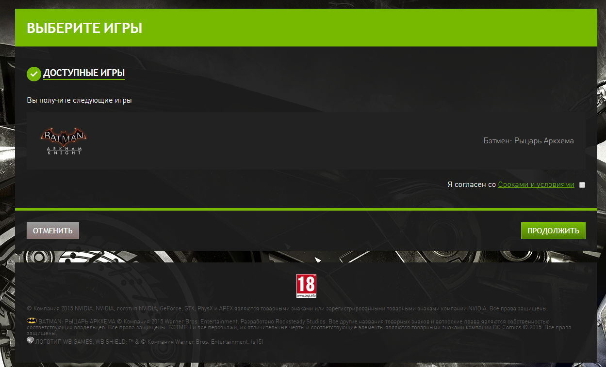 Сегодня прислали код Бетмена за покупку MSI GTX 970 (купил неделю назад и заполнил форму на сайте Нвидии). Так что попробуй снова, возможно просто неправильно ввел номер чека. Игру уже качаю, так что зеленые не обманывают.