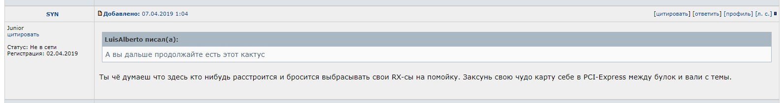 Ты чё думаеш что здесь кто нибудь расстроится и бросится выбрасывать свои RX-сы на помойку. Заксунь свою чудо карту себе в PCI-Express между булок и вали с темы.