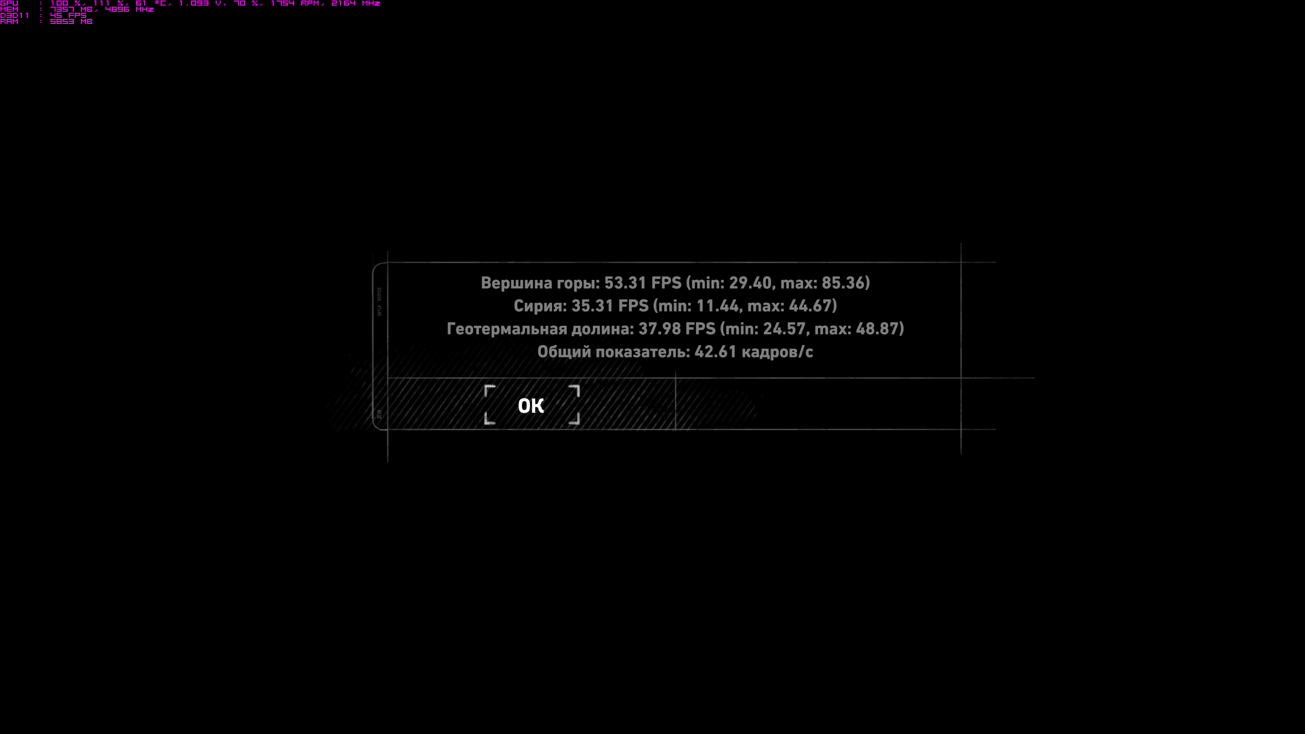 Да уж - стоковая 1070 смотрится совсем уныло из-за медленной памяти. В разгоне-же совсем другое дело Прогнал на скору руку на твоих настройках (QHD SSAA4X, Ultra) при 2164/9800 - получил 53,31/35,31/37,98 FPS