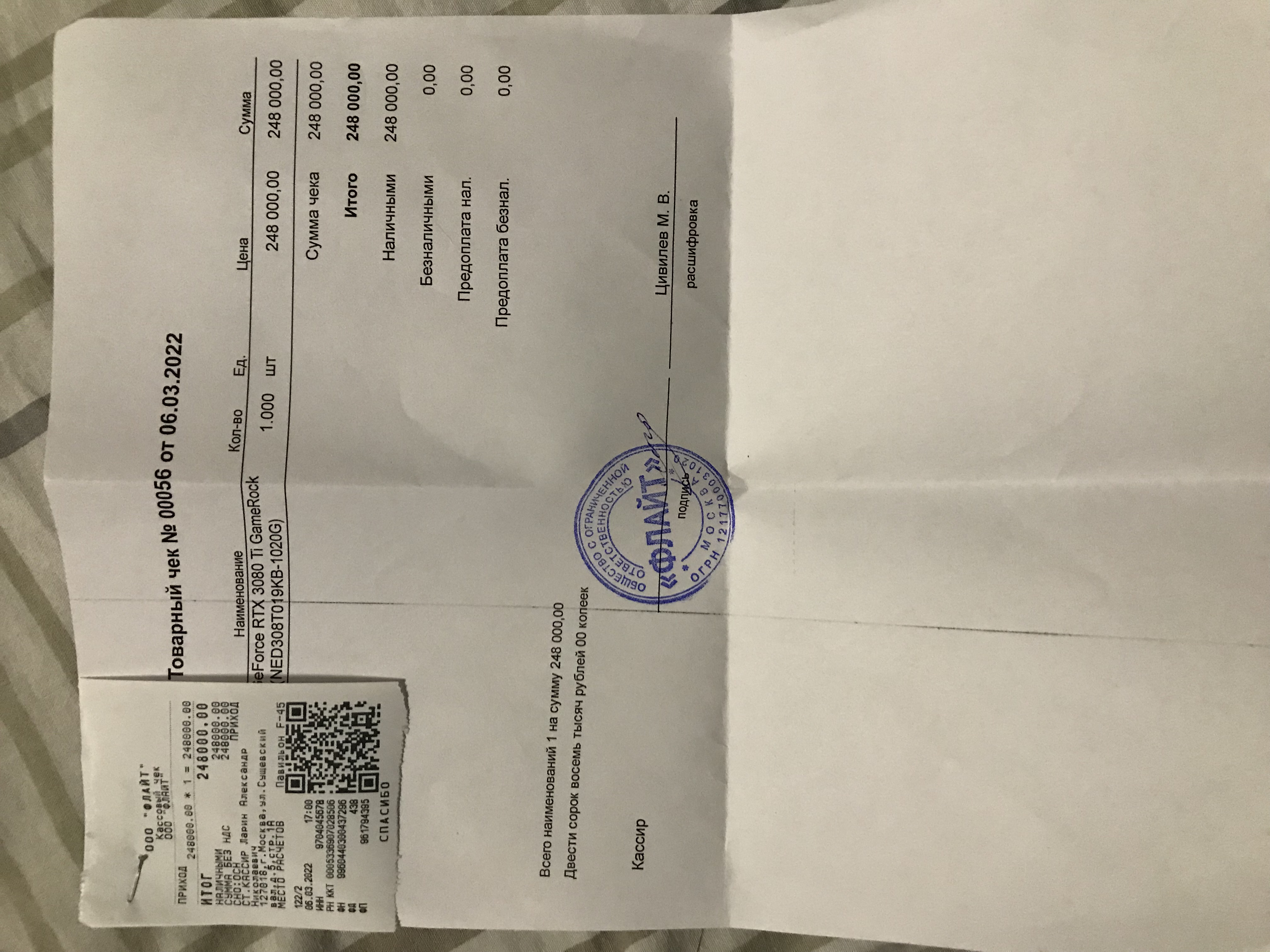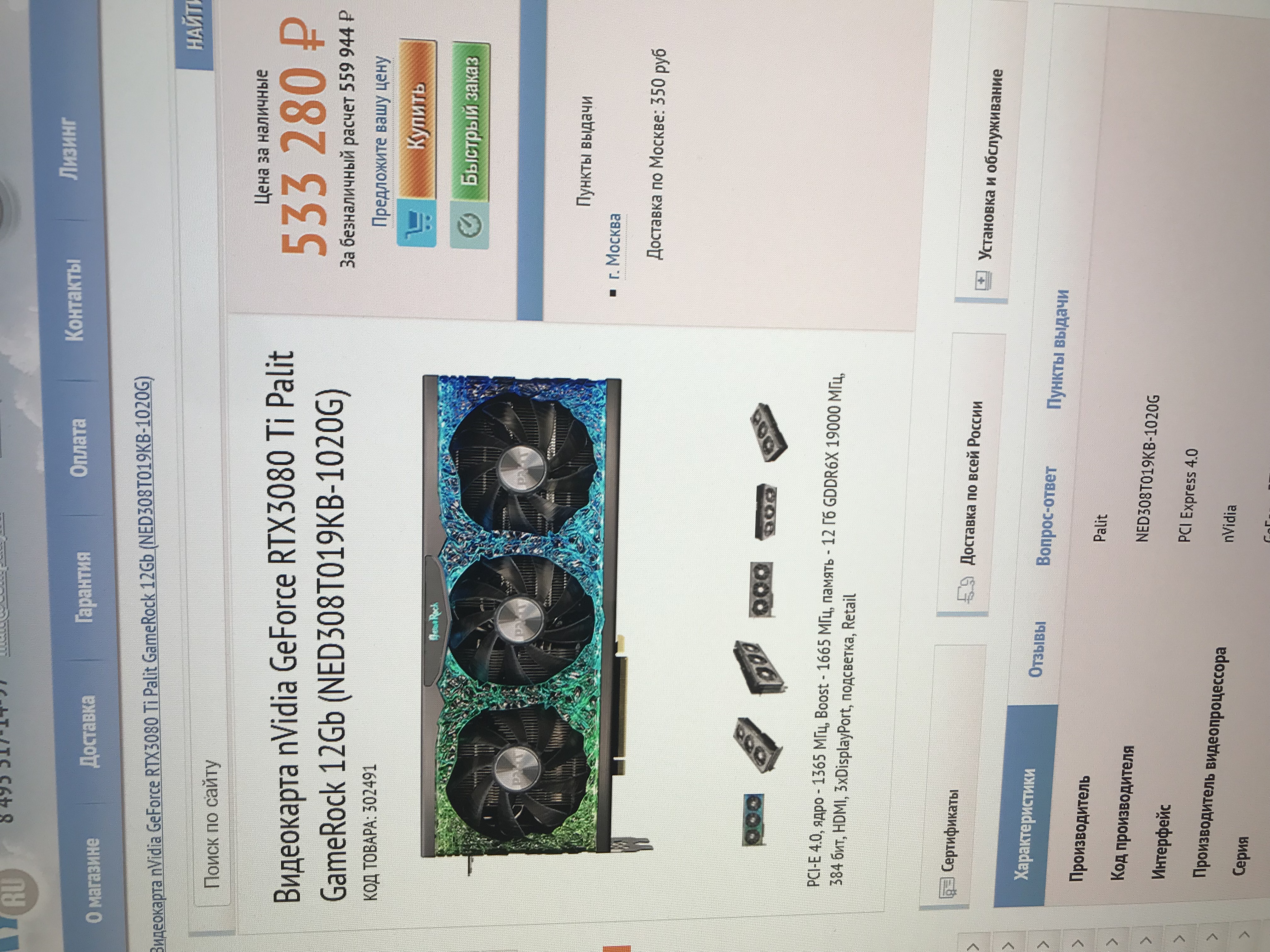 ListomanВ крупных магазинах тогда не было карт ещё... Или были редко(начало продаж...Вот все документы... Короче... За 136000 купил, потом всплекс цены(ковид, СВО)) до 533000...Потом новый ГеймРок покупал, нигде карт больше не было...На Савеле еле нашёл... Ни в коем случае не обращайтесь к ним по гарантии... Только за биосами максимум...Отожмут железо...