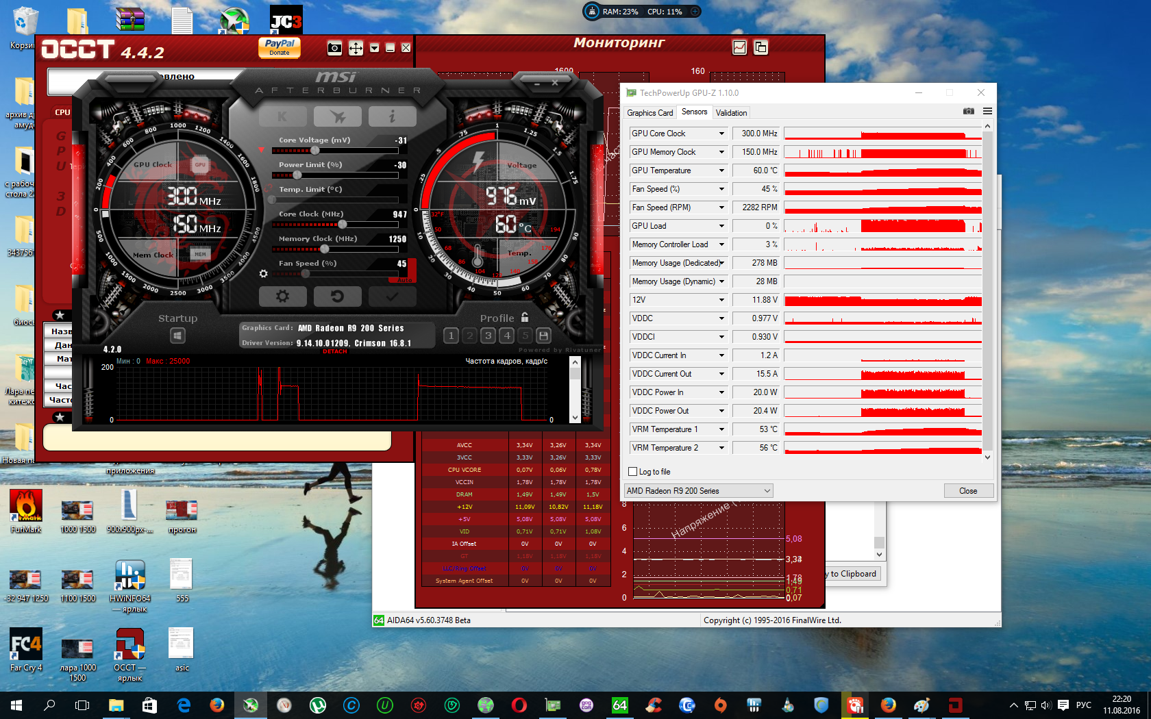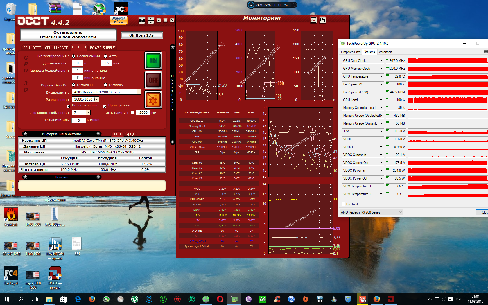 плюс еще через msi AB сделал минус -32 мВ, то есть грубо говоря на частоту 947 МГц должно быть выделено около 1.055в, при этом в ОССТ все равно получилось больше - 1.070в. Это говорит о том, что мониторинги напряжения - хлам, утилиты для его изменения - хлам. Точнее чем вольтметр никто не измерит напряжение