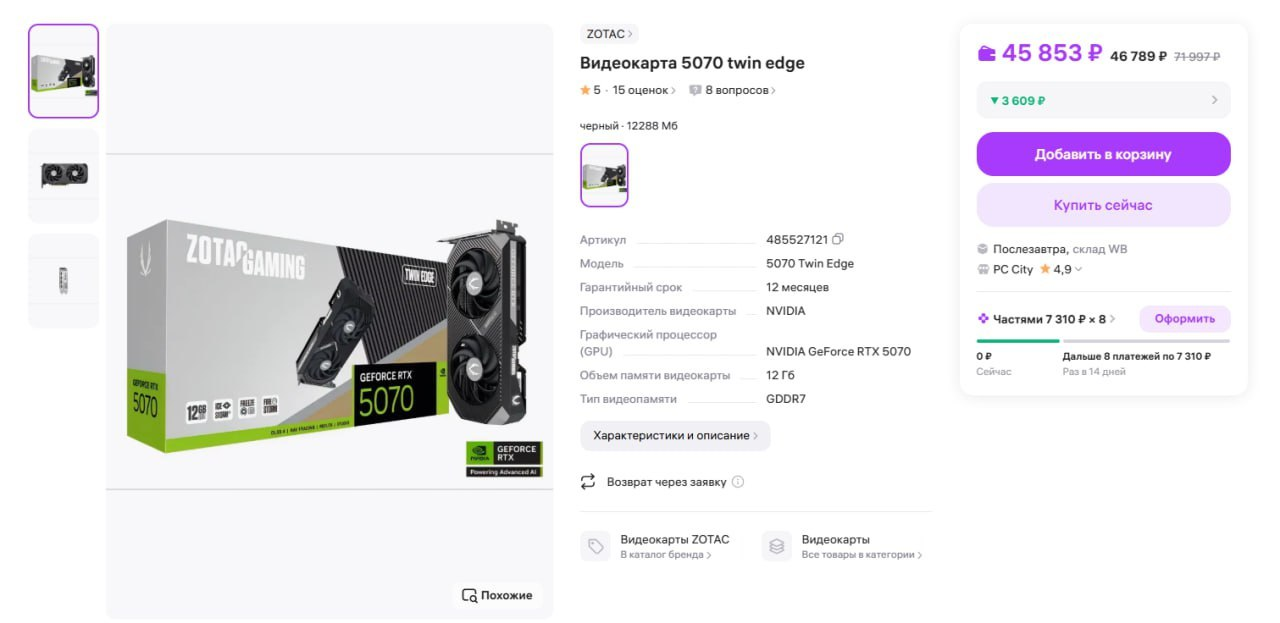 Неделю назад люди за 56 т ,зотак 5070 брали (на гарантии самого озон ) ,я после этого за 65 т брать бы не стал