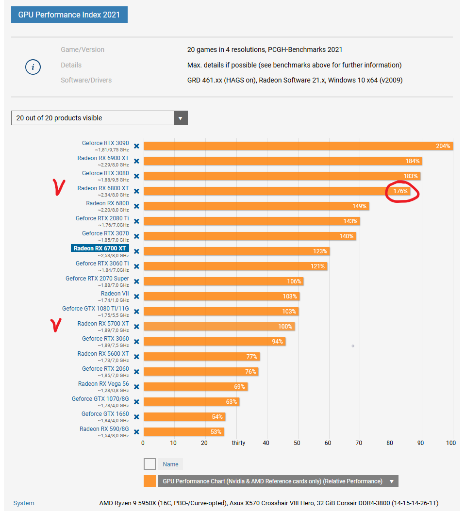 RadeoForce грубо говоря, получается х1,7-1,8 от нынешней (сейчас +/- как стоковая 6800xt). Хотя, пока блок питания не поменяю, карту придется душить на 320-350 ваттах.