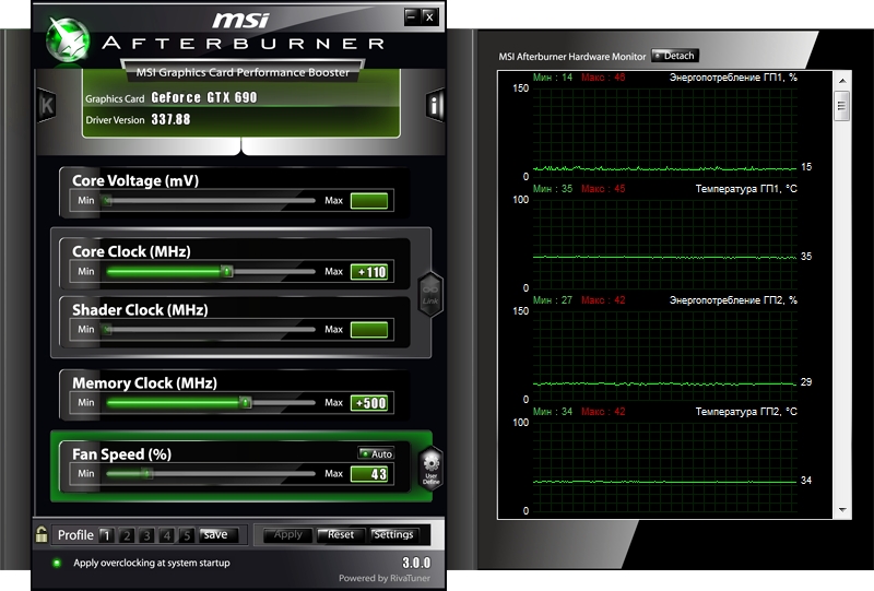 У меня так стоит. Температура макс.подымается на 1GPU-84C, на 2 GPU-82C, только в одной игре, это не критично? Без разгона температура макс.подымается до 80С.