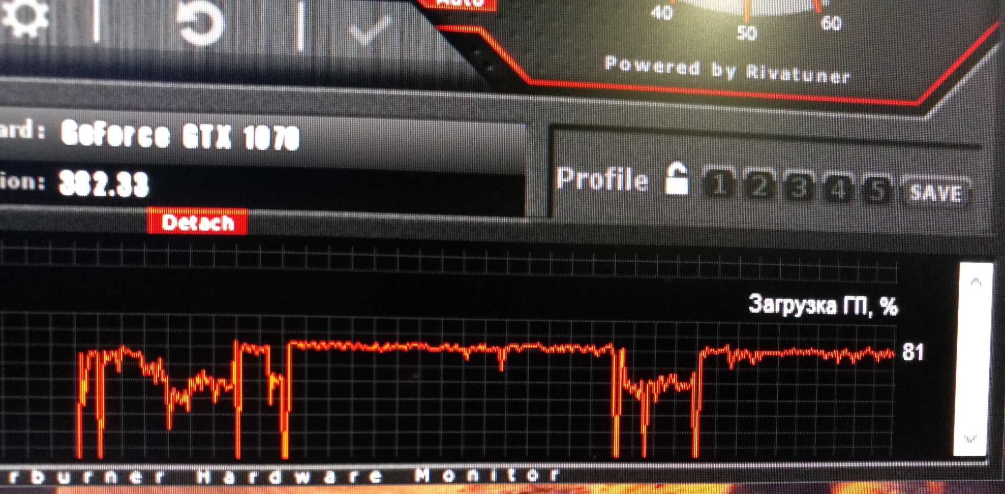 все вроде бы в норме, что с подключением к интернету, что без него, показатели одинаковые, ничего не нагружено. Делаю выводы, что майнинг вирусов нет. Далее запустил Ведьмака-3, снова фпс скачет 25-45 и дергается изображение, вот что в это время зафиксировал ThunderMaster и Afterburner