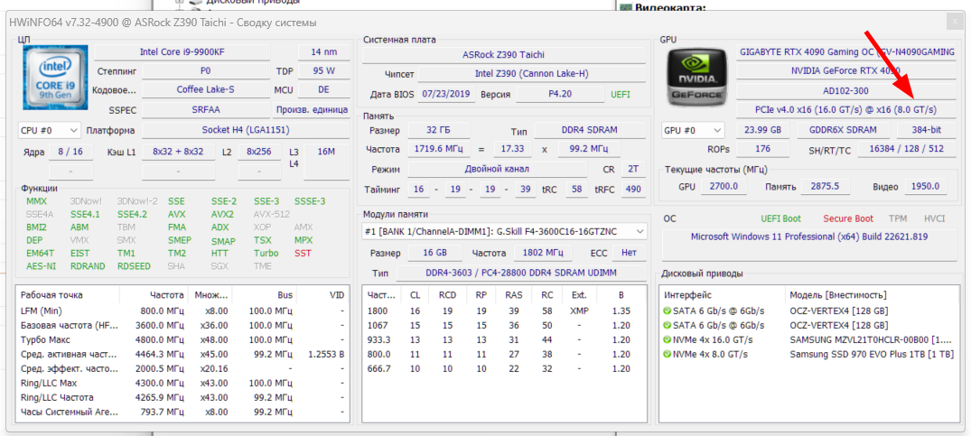 Он показывает, что карта поддерживает ген4 со скоростью 16гт/с, но актуальный режим х16 при скорости 8гт/с, очевидно что ген3. Откуда у такого древнего процессора ген4?