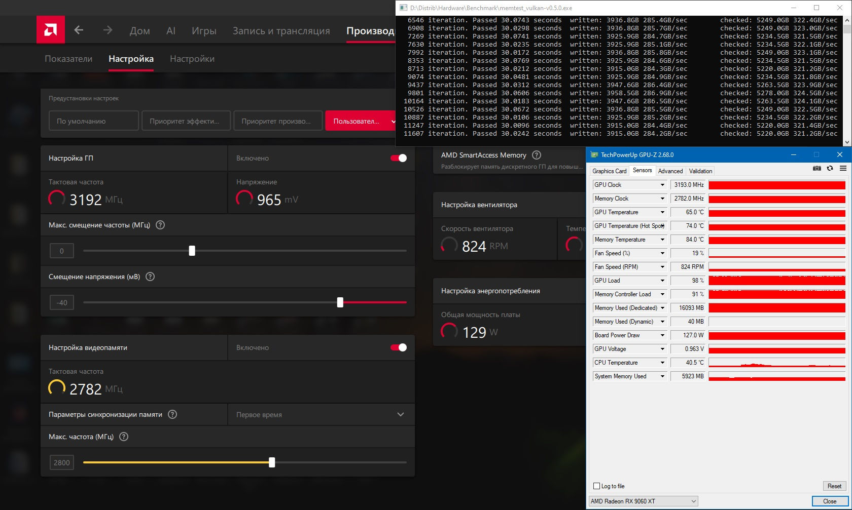 Ну давайте ребят сами тесты проведем, у кого реально есть 9060XT 16Gb карточки. Я начну, так как с цифрами из обзоров ничего не бьется в реальности. У них там и разгоны у всех по -130мв