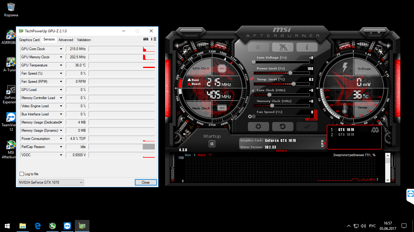 Срочно помогите!!! Что-то не то сделал или не пойму... MSI 1070 Gaming X Решил поднять ядро 2100 и память +900 В итоге перезагруз и Афтебернер показывает частоты 215 и 405 МГц Нажимаю сброс и ничего не меняется... Что произошло и что делать?!