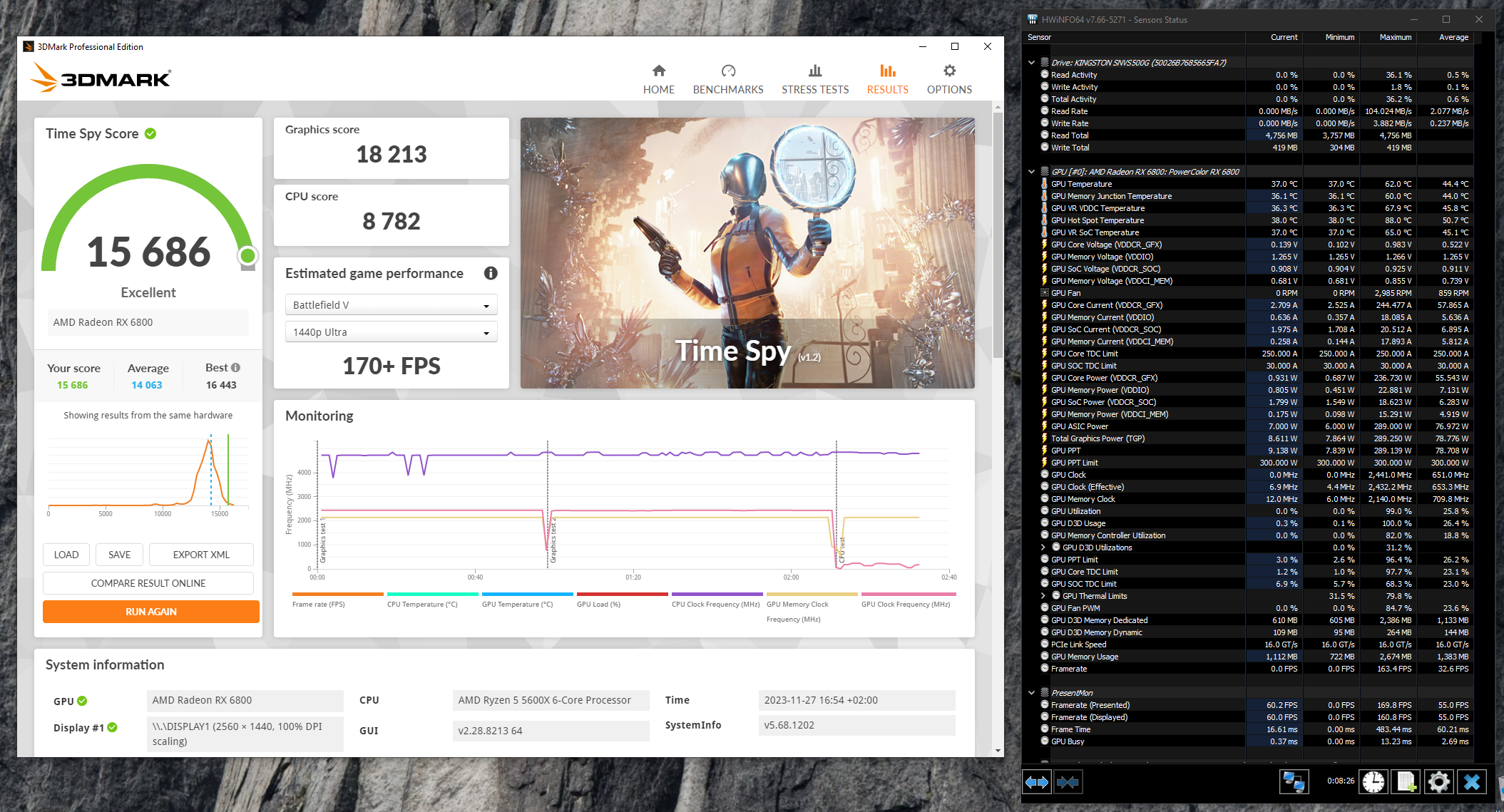 Я делал прогон с лимитом в 300Вт и потребление в пике было 273Вт, была ошибка, снизил частоту до 2450, прошло нормально, но я скрин не делал. Тут вот есть рояльный порт с лимитом 300 и потреблением 275. Если надо могу еще раз прогнать Time Spy. https://forums.overclockers.ru/viewtopic.php?p=18089191#p18089191 Там кстати видно что фактическое напряжение максимум около 0.985, хотя настроено 1.025...на 6600 у меня фактическое было чуть больше чем 1.100, в то время как настроено было 1.080. Наверное поэтому у меня 6800 не дотягивает до 300Вт.