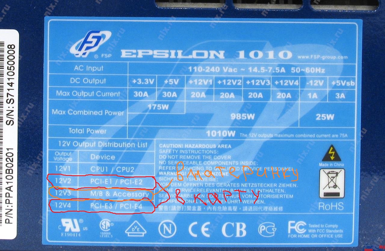 beyzer_alex Не исключено срабатывание защиты БП. В одном из обзоров был акцент на ее срабатывание при малейших перегрузках, и на то, что фактический лимит этого блока по 12V GPU равен (20A+20A) * 12V = 480W. Напряжение мерять смысла нет - с кпд у него все в порядке