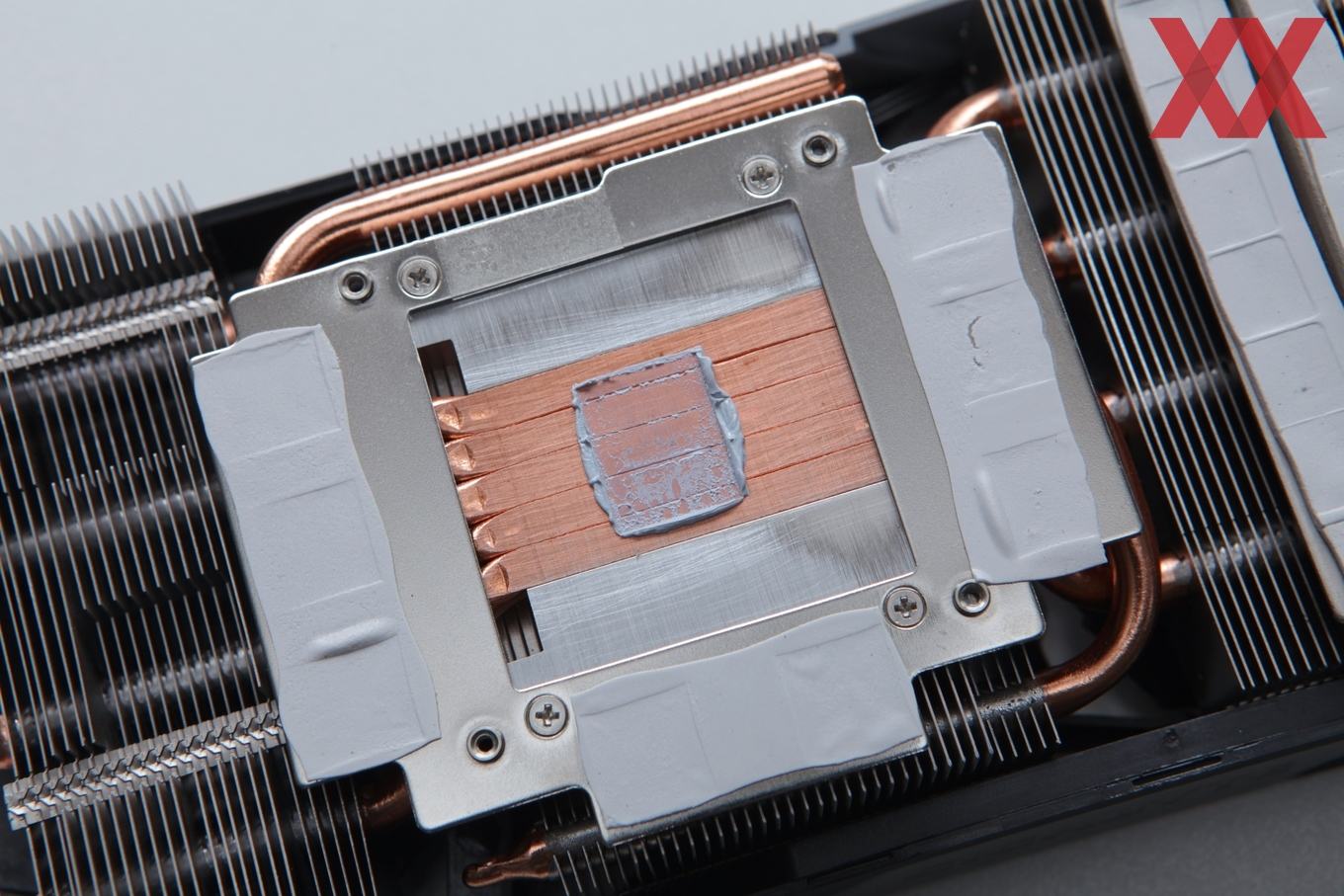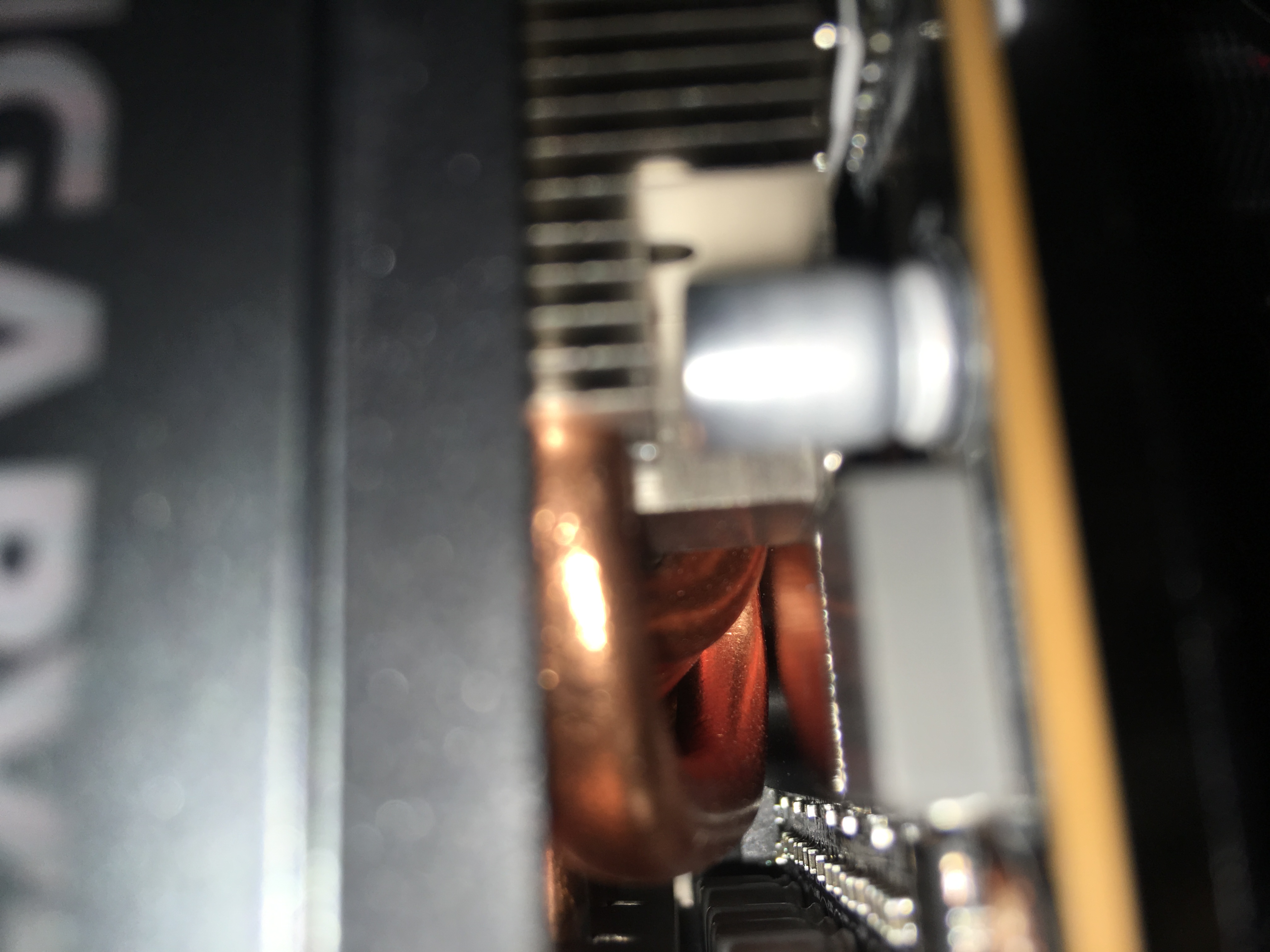 Если я тебя правильно понял, то тебя интересует соприкосновение тепловых трубок с никелированной (алюминиевой?) площадкой, на которой термопрокладки? Судя по этим двум изображениям, соприкосновения почти нет - только краешек площадки, где трубки загибаются, контактирует с площадкой и сами тонкие трубки, которые контактируют с чипом. А так эта площадка прикручена винтами к основной площадке охлаждения чипа и соприкасается с оребрением, ну т.е. теплопроводность непосредственно от памяти так себе, но все же есть.