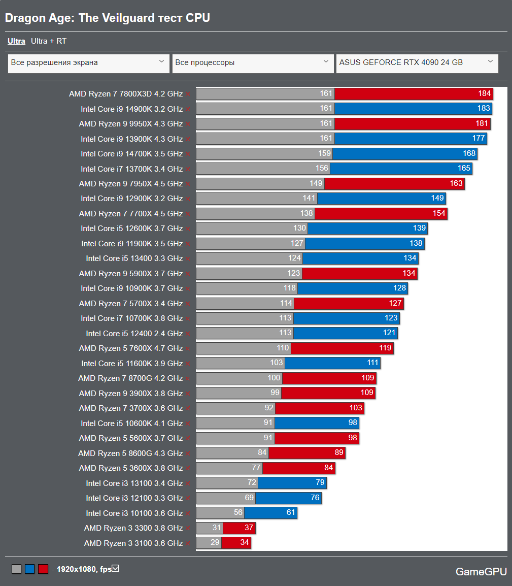 Добавлено спустя 5 минут 26 секунд: Вот например выбираем проц 7600x, и получаем, что он ограничит фпс в некоторых видяхах в данном разрешении (т.е. будет упор в ЦП в данном случае на видяхах от 4070ti и выше в FHD без лучей). А менее производительные ВК уже полностью покажут свою производительность. Вот что значит "масштабируется"