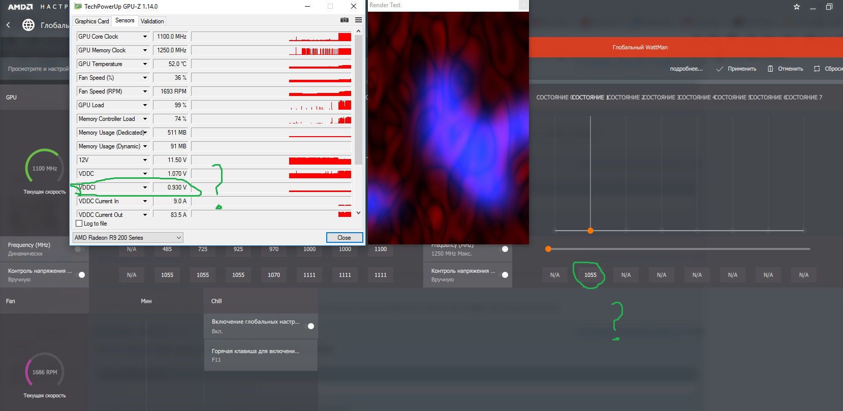 Быть может, если менять вольтаж памяти через дрова, оно автоматически выставляет такое же напряжение на шину(vddci), типо "для стабильности". Но я выставлял шину через биос(по умолчанию была 1.05в, опустил до 0.93в), и что из этого вышло - см. скрин