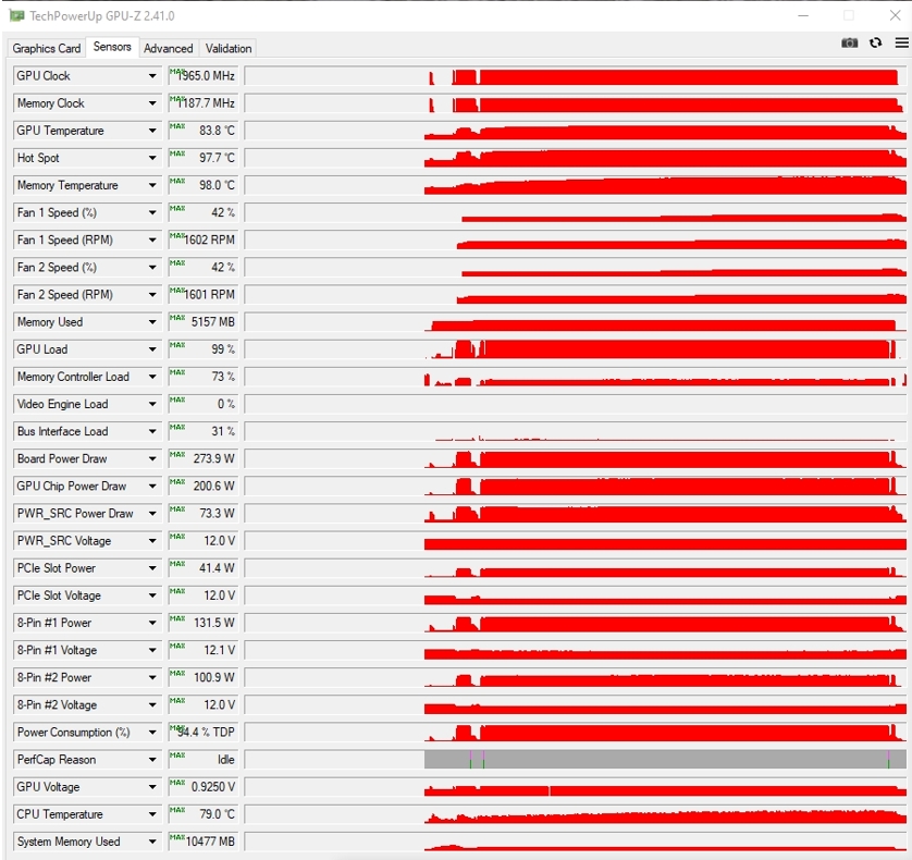 Добавлено спустя 43 минуты 55 секунд: Провёл опыт, ладно хрен с тобой - жарь на сколько хочешь, сбросил карточку в полный сток и поиграл на тех же видеонастройках 1440р ВЫСОКИЕ+ВПЕЧАТЛЯЮЩИЕ, длсс атвтоматически, лучи ВЫКЛЮЧЕНЫ. В итоге фигня какая то - обратите внимание - с вольтажом 0,975 и 1,08 вольта разница заметна лишь по хотспоту, по ГПУ она вроде и есть но не особо как то и заметно.