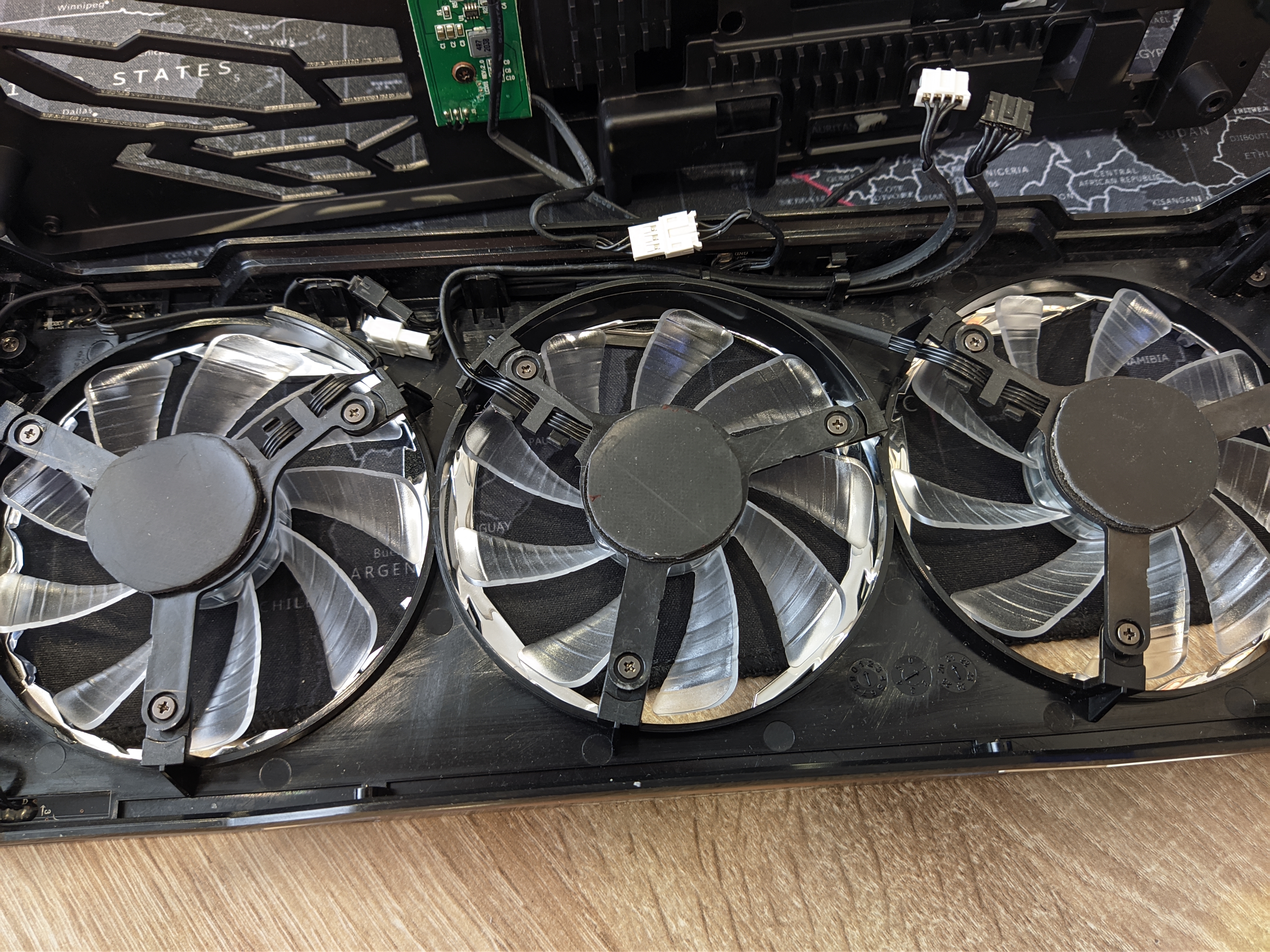 В общем, набравшись духу, решил приступить. Я не буду описывать процесс разборки видеокарты (мало ли однажды придётся сдавать её по гарантии. Забегая вперёд обозначу, что сделать это можно). Разбираем нашу карту и видим: