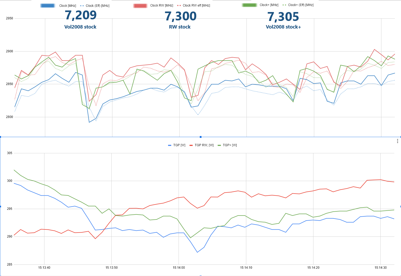 RW Oффсет VRM VID ни при чем (+5mv на всех картах), скорее всего тупо поднят VddGfx Offset в SKU Table, или в vrm VFB "поднастроен" чтобы GPU сам полнял кривую V/F. Хз, мне просто интересно, как они это сделали, ни о каком биннинге здесь речи нет. Как раз наоборот, такой "тюнинг" как правило заканчивается в разы большим кол-вом RMA, т.к. не все чипы вывезут его, что вроде подтверждается кол-вом нытья "проигравших в лотерею" владельцев гигабайта на всяких реддитах и amd-community.