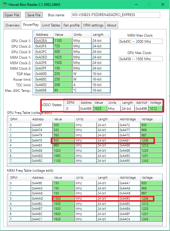 вообще в ватмане нельзя изменить именно 4ое значение DPM-3 и именно на MSI 390 что в подписи а у него тоже 390я и особенно это касается памяти !!!! в плане изменить напряжение чтобы разогнать и не факт что у него именно менять нужно DPM1 смотреть нужно в ватмане какое значение не меняется то и в биосе изменить на нужное