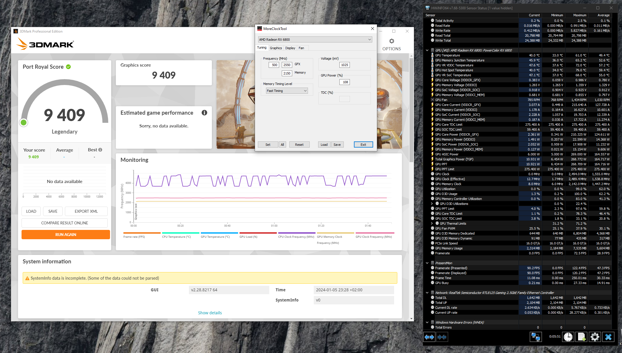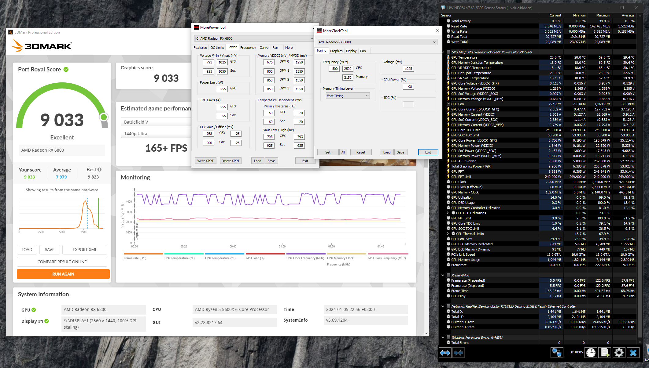 Вот мой боец(Fighter) с лимитом мощности как у 6800ХТ, правда тут ЖМ на радиаторе, но никак не СЖО или тем более читерчиллер. Там правда в комнате прохладно было, как раз проветривал, балкон открыт был, это видно по минимальным температурам.