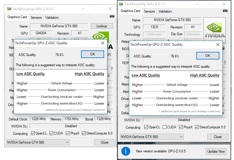 единственное что могу сказать, на своей 970-ой я еще не проверял asic более старыми версиями gpu-z. самая последняя версия показала 74 %. карта вот такая- http://www.regard.ru/catalog/tovar166994.htm