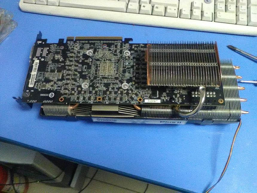 Добавлено спустя 6 часов 36 минут 1 секунду: поставил радиатор на термопасту (с прокладкой температуры выше были) без обдува 95С , на тыльную сторону видюхи в районе врм положил вентилятор, упало до 79С , с 2мя картами (290ый верхний) держится на 86-87С правда дома около 27С температура , зато чип в соло 64С а когда 2 карты 71С, думаю температуры приемлимые, хочу попробывать ещё между рёбер пару термотрубок с радиаторами от ноутов вставить.