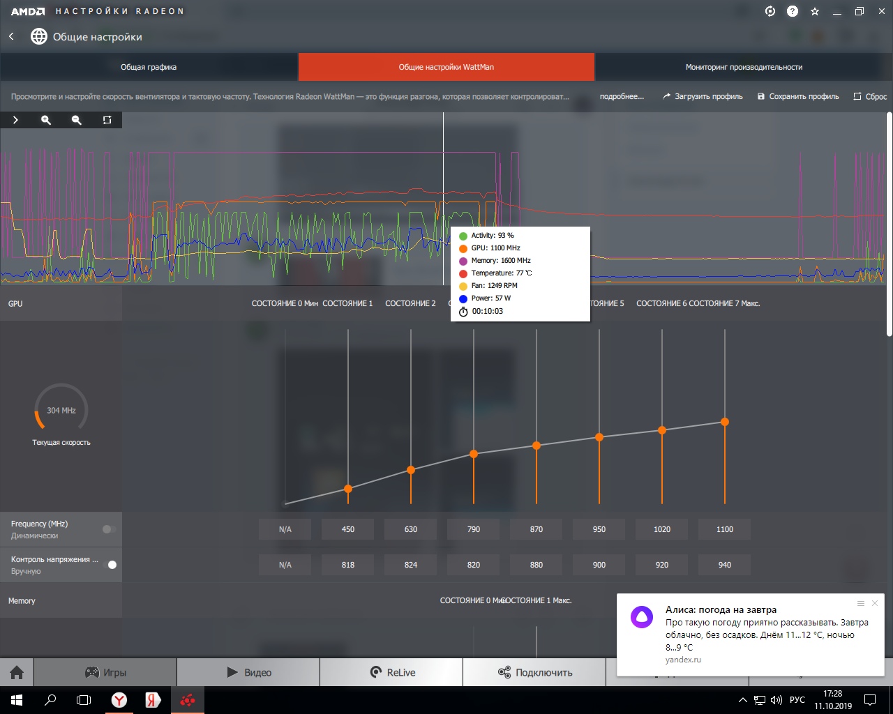 Q: По мониторингу напряжение на GPU немного отличается от установленного. A: Реально напряжение выставляется кратно 6.25 и округляется в большую сторону. То есть, если Вы выставили 1137, то реально у Вас будет 1137.5, а если выставили 1138, то уже реально будет 1143.75 мВ.