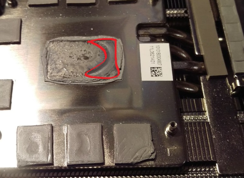 Он и так нанесен! Единственный выход это нанесение ЖМ. А вообще дельта 20-25 по хотспоту для RX 6000 это норма Не знаю кто там виноват, AMD или TSMC но поверхность GPU не ровная из за этого такая дельта по хотспоту.