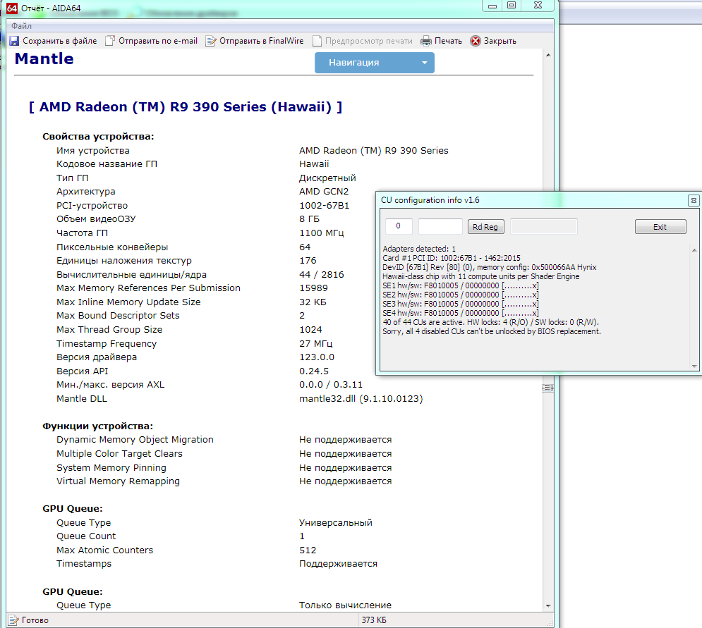 можtn и будет но не хочет ,крестики с правой стороны во всех 4х строчках последние ,но не работает а АИДА только в МАНТЛЕ показывает что разблокированы и после этого GPU-Z тоже показывает что видюха разблокирована до просмотра отчёта в аиде процессоры заблокированы,как посмотришь отчёт то типа разблокировались но прибавки производительности нет