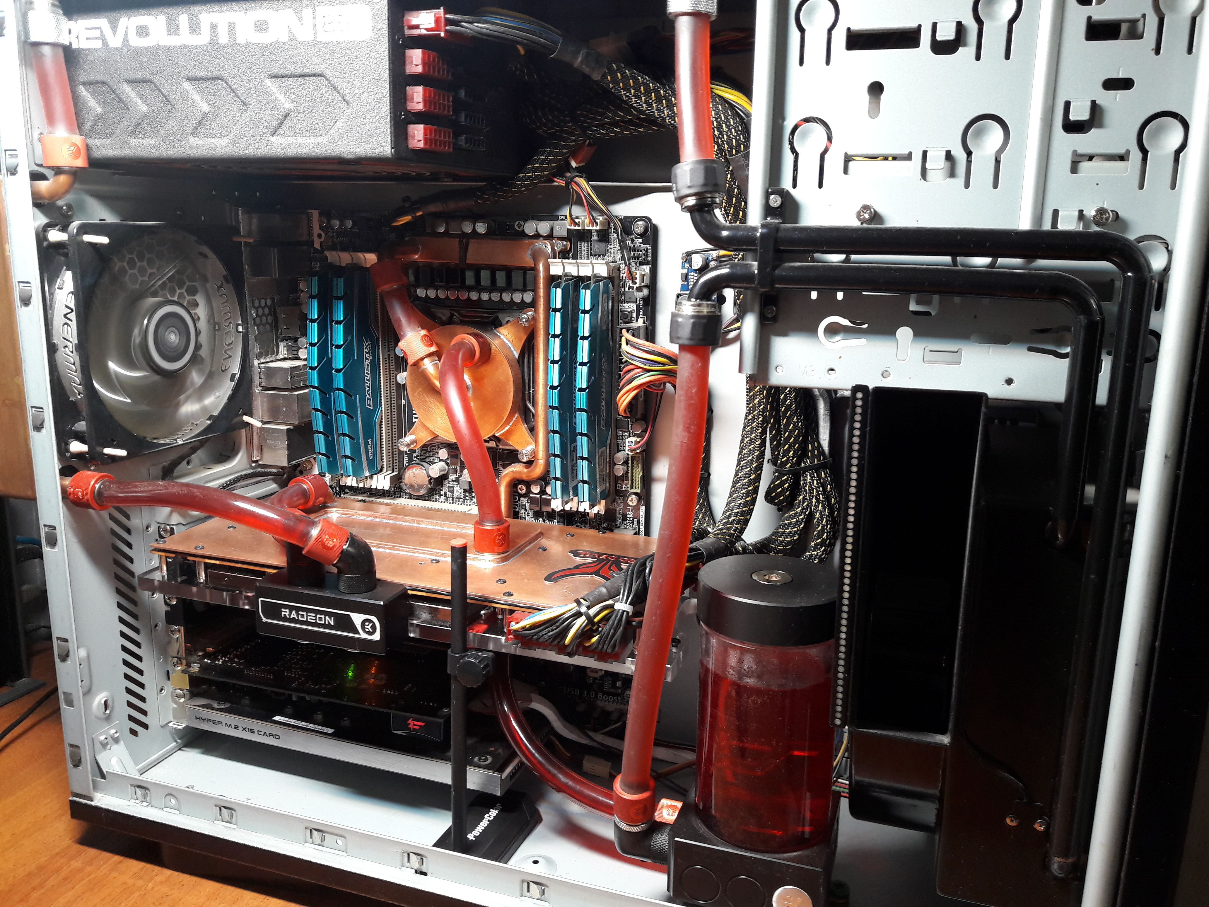 прогнал тест, как обычно 20 кругов, прогрев до стабилизации температуры, учитывая массу меди в компе, занимает не менее 12-14 кругов в комнате 25 градусов, вода прогрелась до 42-42.5, все вентили на автомате как обычно в общем чуда не случилось, дельта ГПУ-хотспот не изменилась -19-20 градусов, VRM-ы градуса 4-5 потеряли. память вообще загадка, температура кардинально не изменилась - всего 6 градусов?, я Вас умоляю. при таком охладе не то что перегреться, нагреться то толком ничего не может. в общем вопрос открыт - откуда считывается температура памяти? дадут отопление, в комнате будет 30+, значит стоит ожидать, что датчик памяти все равно покажет свои 72-74 странно это все как-то в принципе, сейчас меня все устраивает, да и переделывать все равно уже ничего не буду - от добра добра не ищут на крайняк вентили чуть разгоню, все равно их принципиально не слышно на любых оборотах. дожидаемся отопления, а там посмотрим, как и что изменится