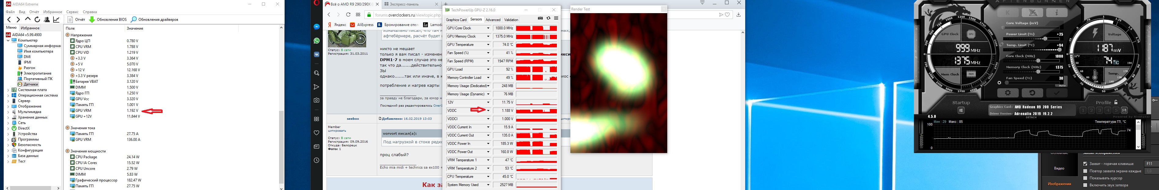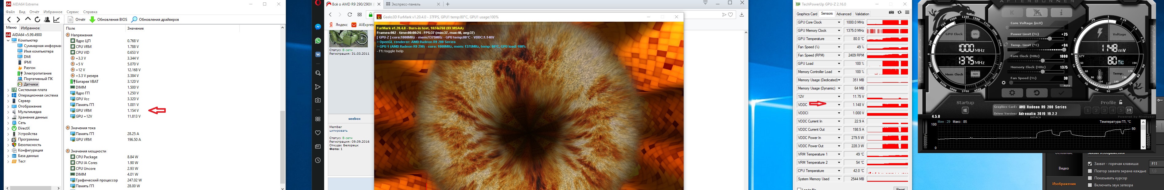 моя Sapphire Radeon R9 290 Tri-X 1030/1400 не держит 3дмарк ( и многие тяжелые игры) даже при напряжении 1180mv. однако Crossout (и подобные) легко тащит на 1000mv
