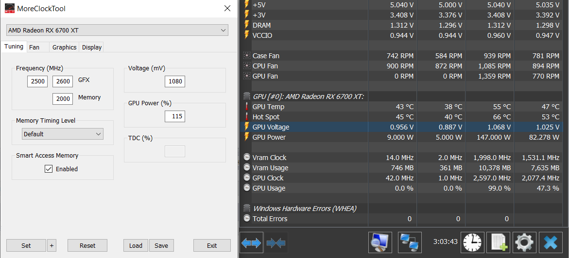 результаты андервольта моего экземпляра 6700xt red devil, для совладельцев. Бенчи в обычном timespy и тесте устойчивости - успешно, при макс потреблении 190в. Потери производительности не заметил.
