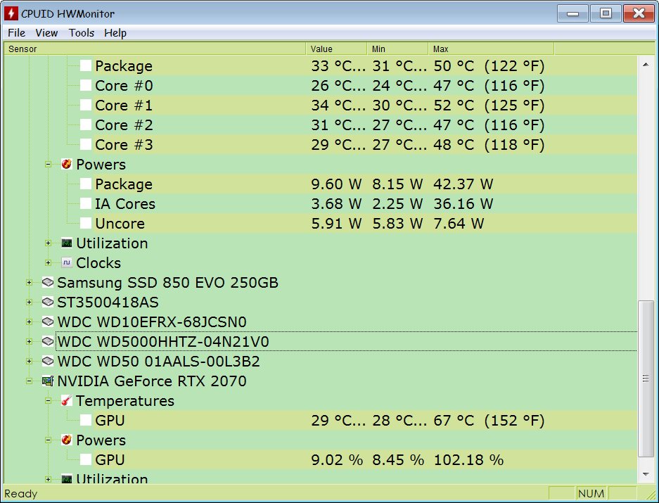 Всем привет. Сегодня получил РТХ2070, заказал с сайта нвидиа. Есть утилитка cpuid hwmonitor, но она график не пишет. Включал пока пару игр, для проверки - у меня крутых мощных нету, это фаллоут 4 и TES онлайн. Первый раз в жизни увидел что такое 100фпс. Старая карта была асус 760 стрикер, давала 29-32фпс макс. В связи с этим пара вопросов. 1.Подскажите пожалста для видюхи Нвидиа утилиту для регулировки пропеллера, мониторинга температур. Типа ASUS GPU TweakII, очень удобная прога, но не могу найти аналог для не "фирменной" карты. 2. Где бы найти инфу, как бы грамотно выставить частоту монитора(100-120-144гц) для карты, чтобы она не "напрягалась" излишне. Начитался про перегревы, вылеты, артефакты, и чет сильно очкую что как бы не сгорела. Потом не докажешь что не по моей вине. Наоборот хочу уменьшить "мощь" карты. Я предполагаю что карта работает на какие-то проценты больше\меньше в зависимости от частот монитора. Незаметен переход от 120-144Гц, но как на это реагируют карта? Надеюсь понятно вопросил.) Полчаса погонял в ТЕСО, - темп 70макс. нагрузка на чип - 92-98%, даже102,18%(???) Откуда больше 100?
