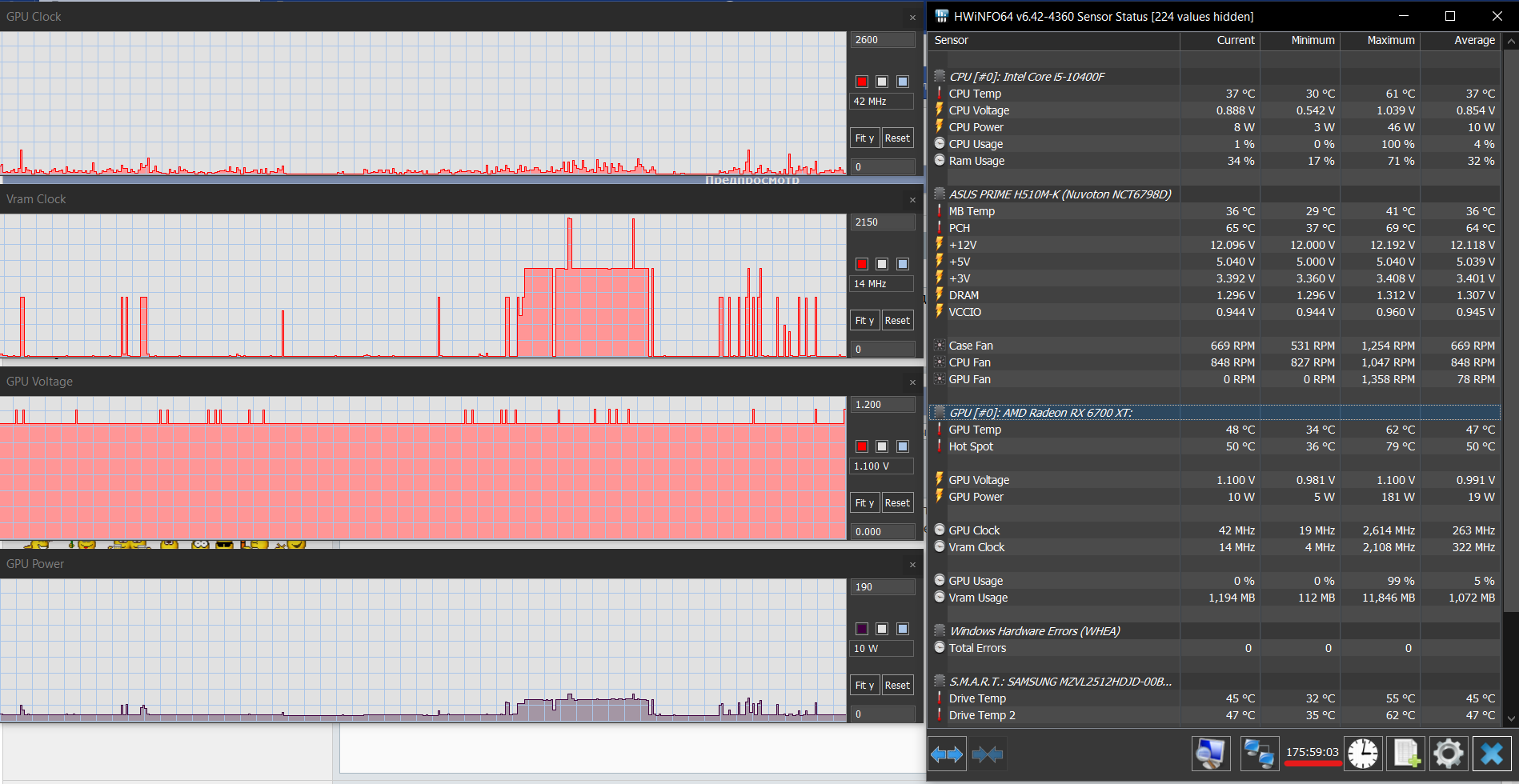 Cпецом не спешил с выводами, касательно отключения энергосберегаек для фикса черного экрана, крит срок был в месяц стаб работы, чтобы что то утверждать. И на втором месяце такой работы, вкупе с андервольтом, локом частот и разгоном памяти в "запрещенном" AB, летней жарой за бортом, на том же браузере с аппаратным ускорением, с 180 часами непрерывного мониторинга, играми, тестами цикличной заскриптованой нагрузки в простое, думаю могу утверждать что наконец избавился от черных экранов отключением энергосберегаек. Просто отключить ускорение в браузере не зашло, пропадала плавность. Из анализа мониторинга работы в браузере, грешу на видеопамять. В серфинге она бустит чаще и активнее чем гпу, и видимо при включенных энергосберегайках иногда не успевает это делать корректно, крашило и в хроме, и в лисе, но эт не суть важно для меня. Лучше попробую довести непрерывный мониторинг до 720ч, как железный пруф стабильности.