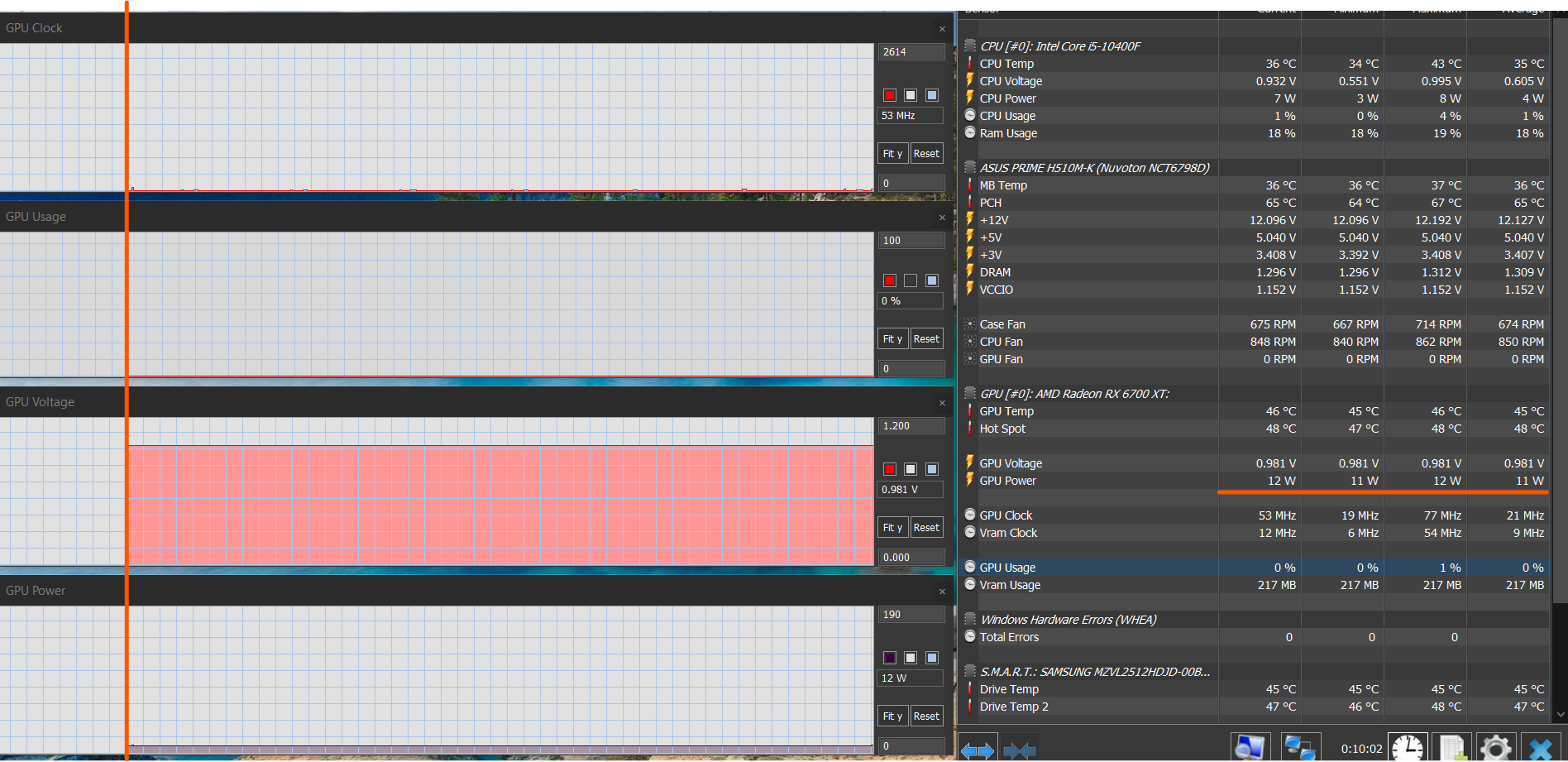 * из 10 минут простоя, гпу 9 минут работал в GFXOFF стейте, кратковременно просыпаясь при фоновой активности. Моя версия HWinfo не мониторит UL напряжения и частоты, отсюда пробелы, как в gpu-z, по которым наглядно видно работу этой энергосберегайки.