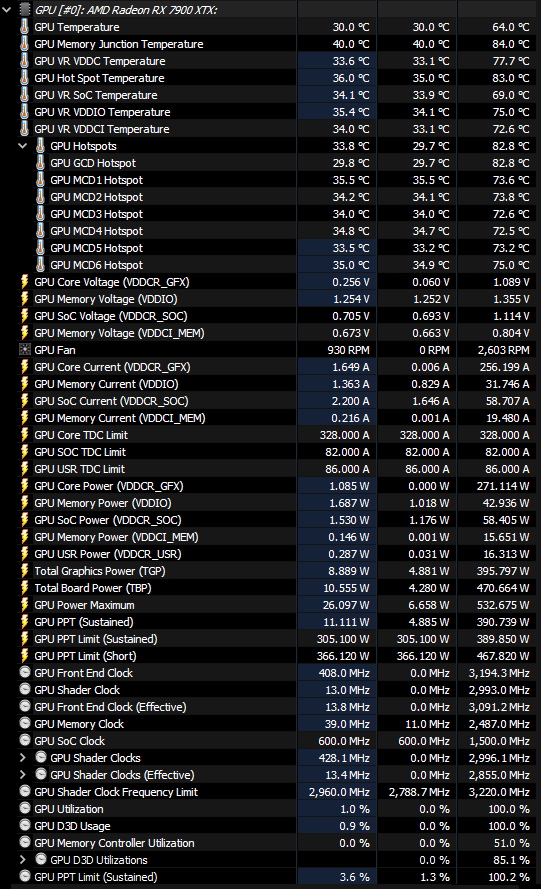 1.Как разогнать видеокарты Radeon 7000-й серии? Важной особенностью архитектуры RDNA3 является то, что разгон GPU даёт линейный прирост fps в играх до 2800 МГц. Т. е. на сколько % разогнали, столько % прирост fps в играх получили. После 2800 МГц линейность разгона теряется, и как не гони и не повышай частоты, Power Limit, прирост fps в играх составляет всего 4-5%. Об этом рассказано в этом обзоре https://overclockers.ru/blog/Vorvort/show/121115/obzor-i-testirovanie-videokarty-asrock-radeon-rx-7900xtx-aqua, раздел Нюансы разгона, где оверклокеры, с помощью множества тестов, выяснили подробности. В синтетических бенчмарках порога в 2800 МГц нет, разгон линейный на любых частотах. Обновление: у одного из владельцев 7900XTX линейный разгон в играх после 2800 МГц GPU, но для этого он разогнал GDDR6 до 2800 МГц. Так как же разогнать Radeon 7000-й серии? Хорошие результаты даёт комплексный разгон GPU и GDDR6. Например на моей видеокарте разгон GPU до 2852 МГц и GDDR6 до 2700 Мгц дал прирост fps 12% в играх, в сравнении с референсными частотами 2500 МГц GPU 2500 МГц GDDR6. Вершиной разгона является андервольтинг. Если вам удалось после разгона снизить напряжение на GPU без потери производительности - поздравляю! Вы сделали очень удачный разгон. 2. Как сделать андервольтинг? У видеокарт Radeon 7000-й серии вольтаж на GPU часто завышен с завода. Снизив напряжение на GPU в драйвере Radeon Software пользователь может уменьшить энергопотребление и нагрев видеокарты без потери производительности. Единственный нюанс - не все игры работают на сниженном для GPU напряжении. Например у меня Radeon 7900XTX в игре Baldurs Gate 3, в 4К ультра, работает на 1.05 В, а в игре Division 2, 4К, кастом настройки (тяжелее Макс.) для GPU требуется 1.12 В. Ещё одним важным инструментом андервольтинга является снижение Power Limit видеокарты. Иногда у геймера в игре очень много fps и ему не нужны избыточные энергопотребление и нагрев видеокарты. Он ограничивает в драйвере Radeon Software Power Limit видеокарты, снижая указанные параметры под нагрузкой, зачастую не теряя производительность в играх. Пользователь может сочетать оба инструмента для андервольтинга, получая отличные результаты. 3. Как решить проблемы штатной эксплуатации "воздушных" Radeon 7900XTX при перегреве hot spot? В теме были жалобы владельцев Radeon RX 7900XTX на перегрев hot spot при штатной эксплуатации. Проблема заключалась в штатном термоинтерфейсе, который выдавливало радиатором системы охлаждения. Решается она заменой штатного термоинтерфейса на термопасту с фазовым переходом. Автор F. A. Q. не несёт ответственности за манипуляции с видеокартами, пользователи делают их на свой страх и риск. 4. В каких играх Radeon RX 7900XTX показывает высокую производительность в 4К с ультра настройками? (без RTX Nvidia) 15 проектов, где 7900XTX была на равных или минимально отставала от 4090: AC: Odyssey, Far Cry 6, AC: Valhalla, Cyberpunk 2077, RDR2, CoD: MW2, Remnant 2, Hogwarts Legacy, Starfield, BG3, Immortals of Aveum, Ratchet & Clank: Rift Apart, Fortnite (DX12, HW RT, Nanite epic, Lumen epic), Horizon Forbidden West, Dragon's Dogma 2. С трассировкой лучей и высоким fps в 4K ультра на Radeon RX 7900XTX можно поиграть только в Doom Eternal, Marvel's Spiderman remaster, Far Cry 6.