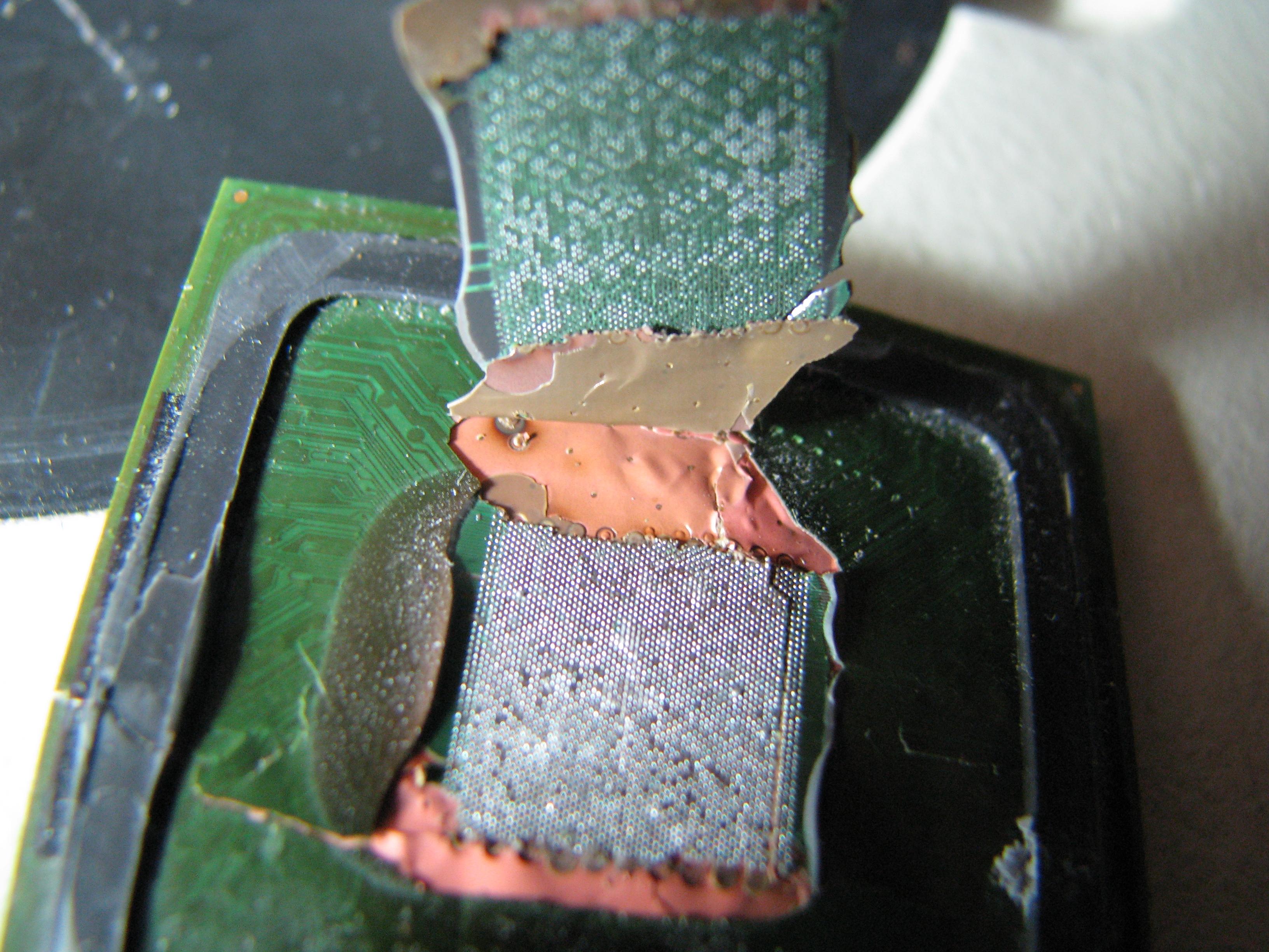 кстати потому флюс и не нужен, там всё герметично и никакой флюс туда не попадёт...А вот конструкция CPU что интела, что АМД такая же, но они отвалом кристалла никогда не страдали. Не кажется ли это странным?