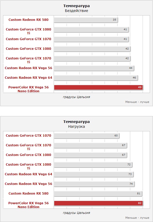По моим данным реф намного шумнее http://www.hardwareluxx.ru/index.php/ar ... l?start=12 39 дБ у Nano против 49 дБ у рефа. У Nano всего 2000 оборотов. Если выкрутить, как у рефа, то температуры будут почти такие же, хотя компоненты видеокарты на PCB Nano расположены более плотно.