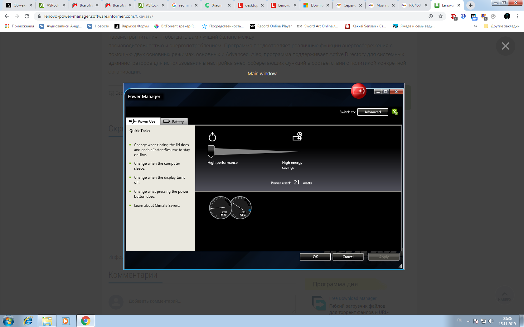 Зашел на сайт Lenovo, вбил туда свой комп, и там есть какая то утилита под названием Lenovo power manager якобы она отвечает за энергопотребление всех желязак, и вышла она что бы с ней черти здоровались 26 ноября этого года....