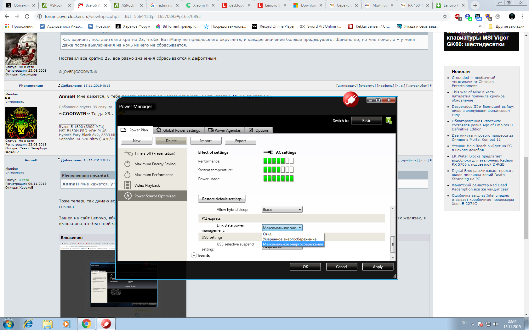 P.S: и да ребят что бы это не за мать его черта за хвост бредом, но HW теперь показывает при старте видео карты в MSI Кобмайне минимум 28wt чего раньше не было выше 26. Перед этим заходил в энергопотребление PCI в самой винде там писало макс.производительность.