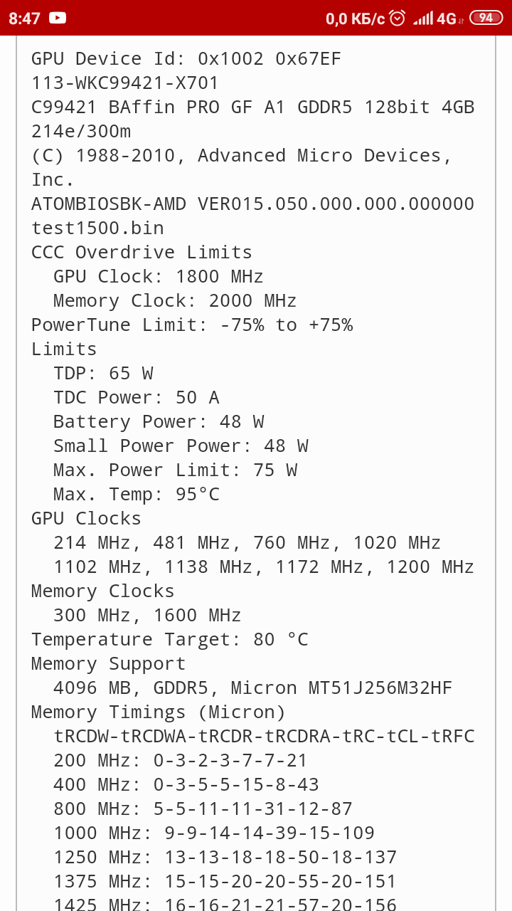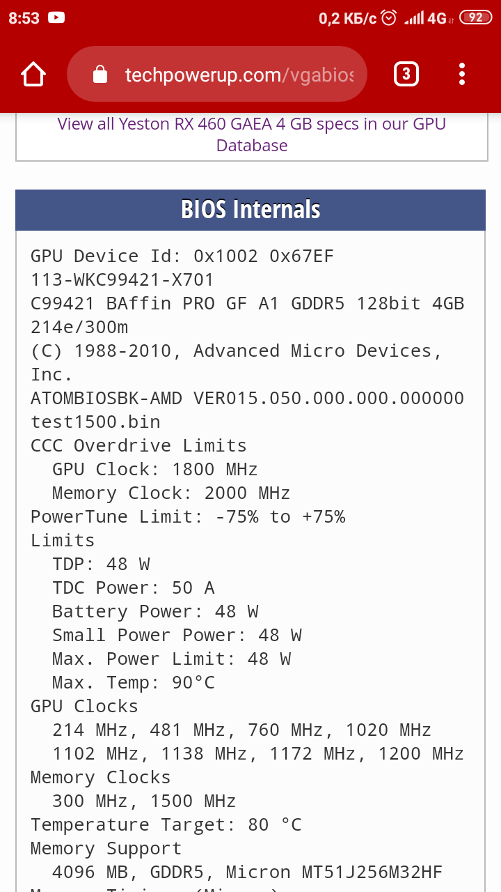 Всем привет, и это снова я , собственно нашел ещё один Биос для своей карты, должен ведь нормально встать? Скрин там где Макс 48 потребления это у меня сейчас стоит тот что 75 только что нашел