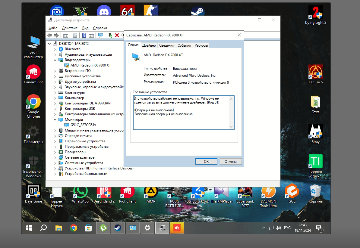 Привет всем ещё раз. Сегодня на холодную опять такая же проблема. Вчера обновили биос на последний, в настройках биос отключил настройку igpu. Удалили левые программы и все что не известно было.. Попробуем переставить драйвер через дду Потом видимо нужно винду, если не пойдёт..
