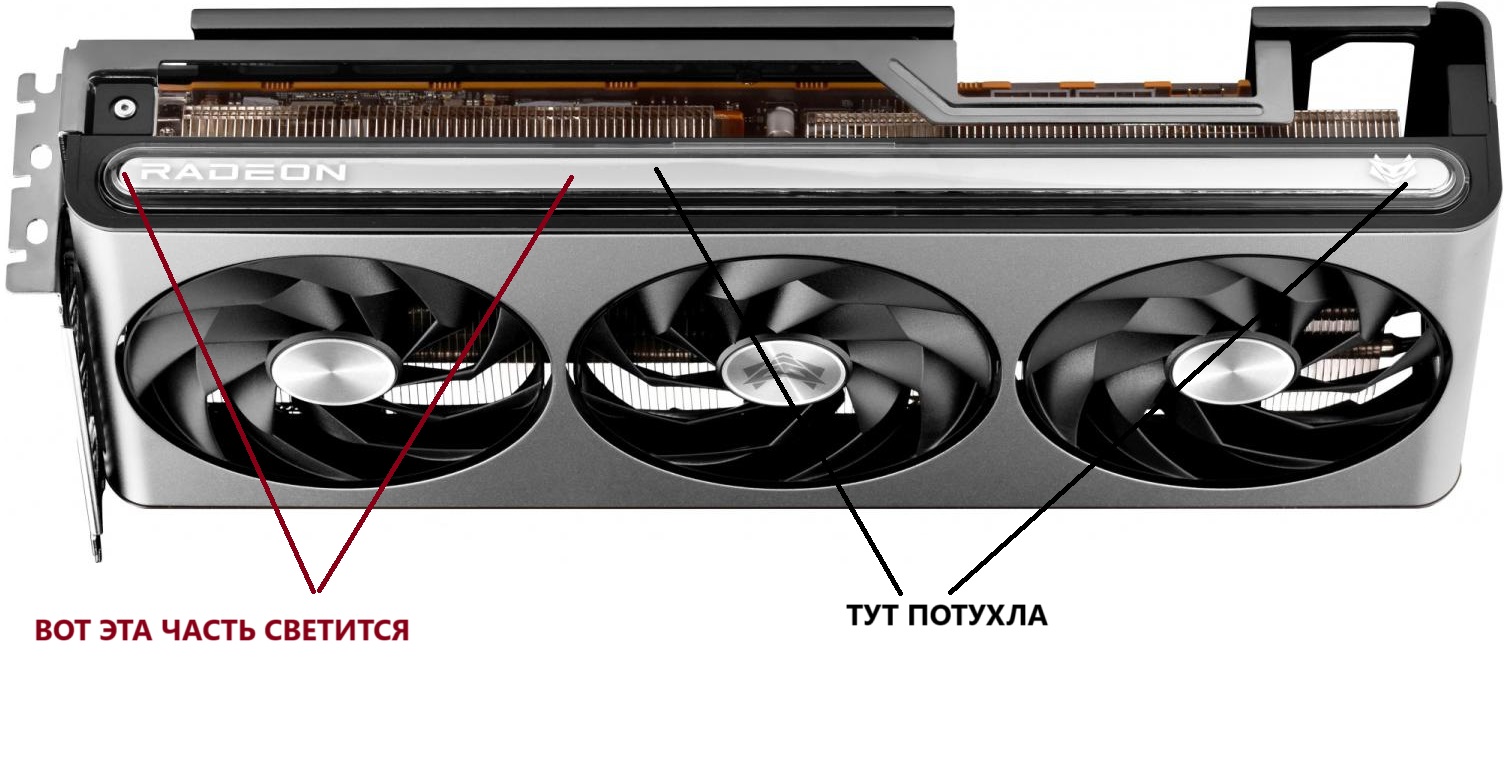 Товарищи, кто нибудь сталкивался с такой неисправностью - rx 7800 xt nitro+ перестала работать подсветка полосы, горит лишь часть, там где написано радеон это гарантийный случай?