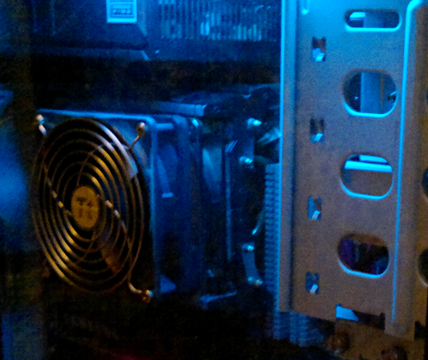 Раньше на старой платформе кулер на проце вытягивал воздух сбоку через решётку и каркас от кулера. Я для этого в стекле и вырезал дырку под вентиляцию, как раз под кулером. Стекло тоже сам в корпусе поставил.