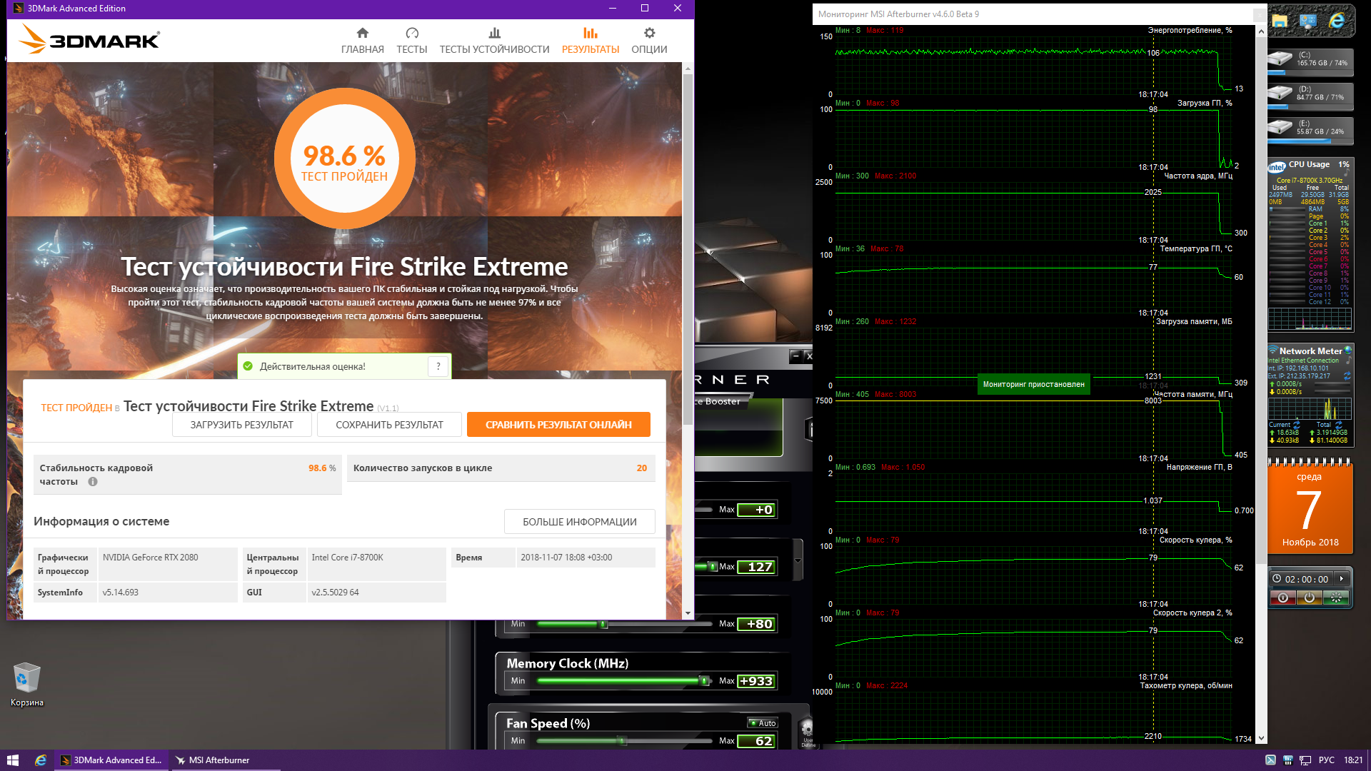 Кто юзает Палит 2080 Ti, подскажите температуры при 97-98% загрузки видеокарты. У меня выходит 75-76 градусов, при регулировке обдува по умолчанию. Можно выкрутить обдув на сотку при 65 градусах, но получается шумновато. Стало интересно, это у меня такие температуры на ней, или всех пользователей Палит?