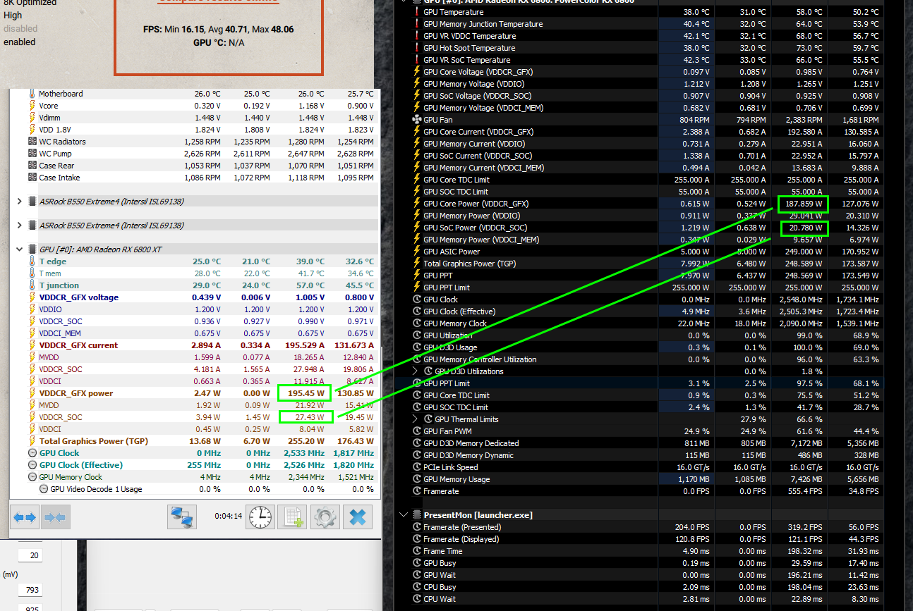 Это у меня прошивка еще с первых версий оригинального 6800XT. С ней потребление Vsoc конское даже в сравнении с AIB-ами 6800XT. И это еще с модифицированной кривой V/F для SoC cо смещением по "Y" -100mv. Щас попробую еще снизить