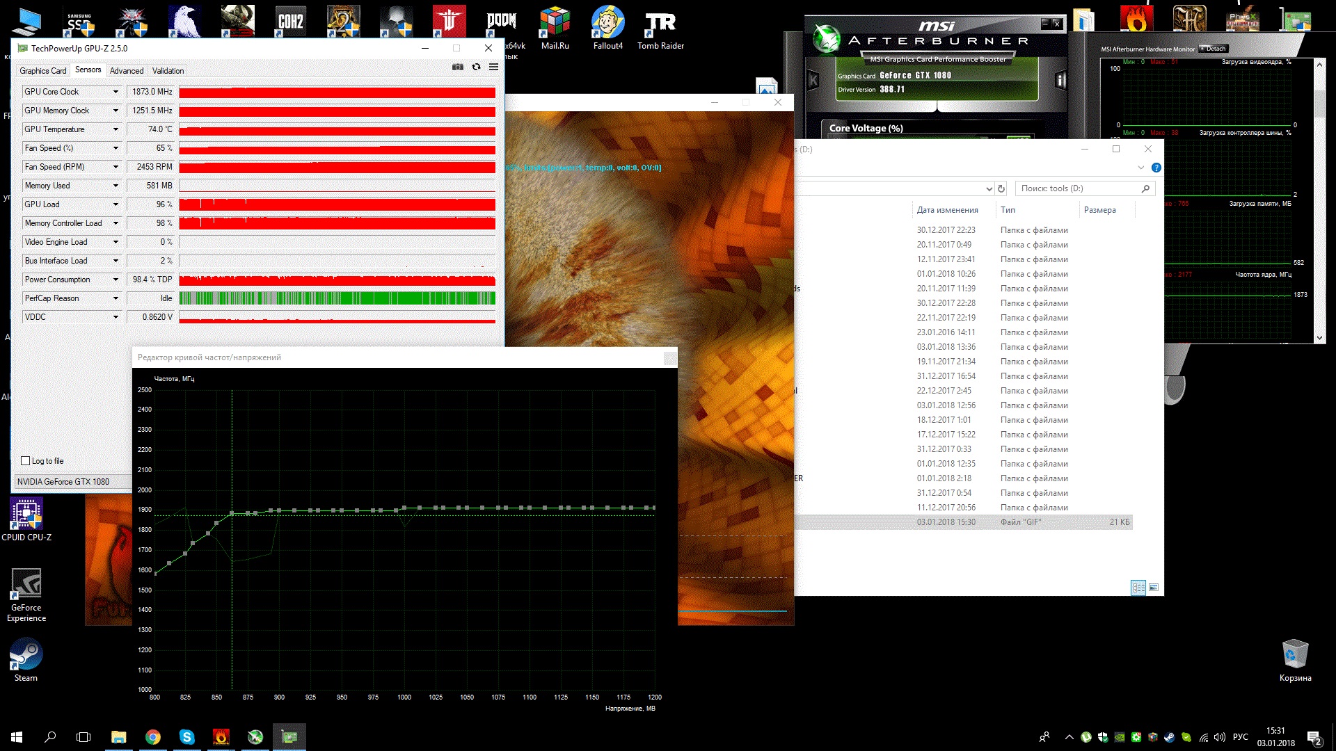 решил курвой разогнать карту, а у меня почему-то вольтаж даже до 1В не поднимается, скачет на 0,85-0,9. максимум что разогнал это до 1880 при работающем бублике при 0,86 1870 разгон. Добавлено спустя 33 секунды: думаю, может биос попробовать зашить от xtreme