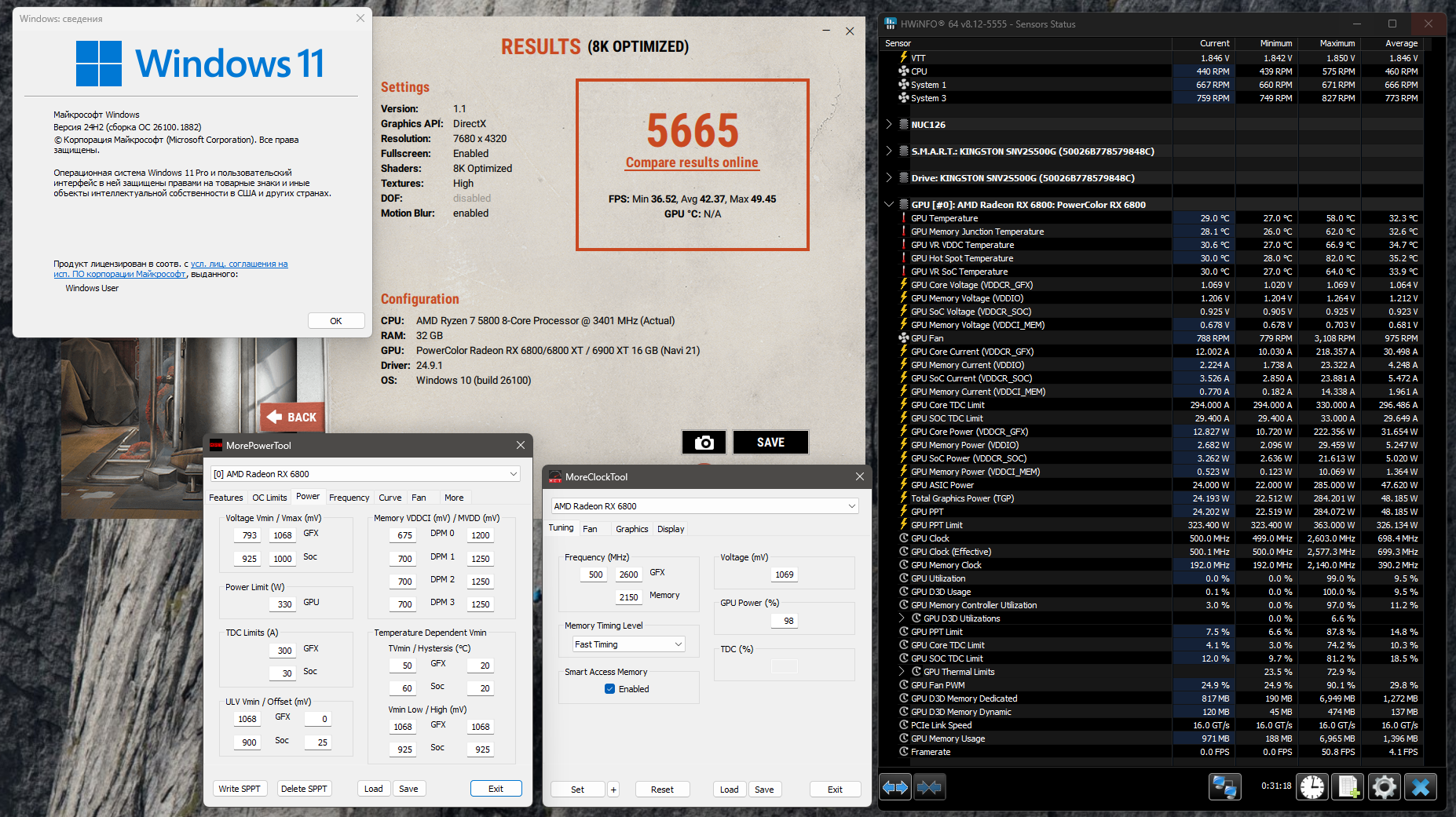 Чтобы получить частоты выше, чем 2725 МГц (в моём случае) необходимо шить биос от разогнанной карты. Сделал несколько тестов для понимания нужно вам это или нет)) Стоковые настройки карты: