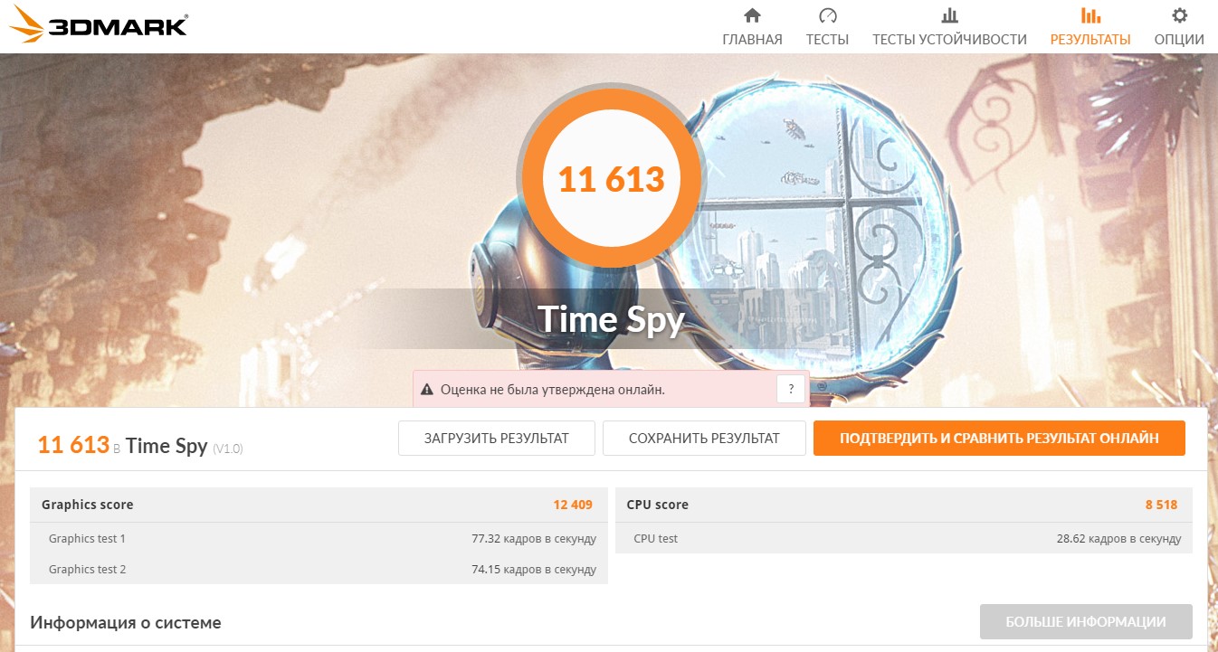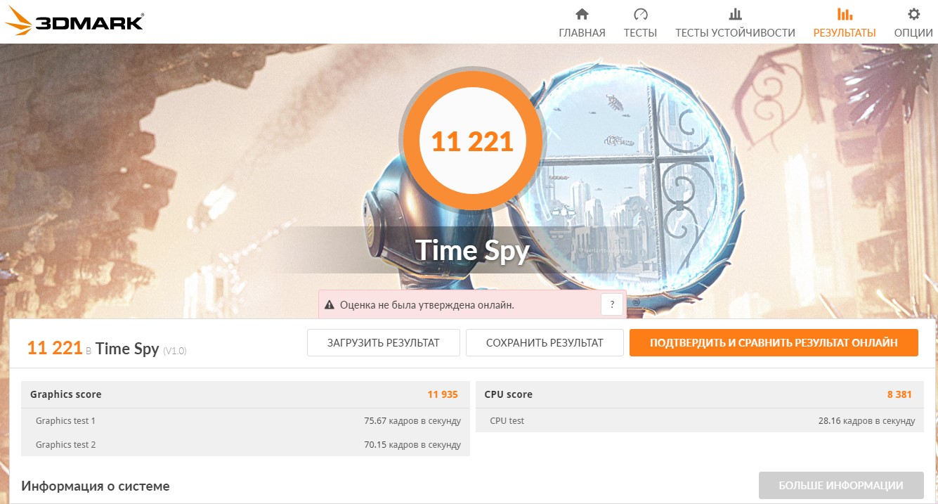 Карта в Time Spy, во всех случаях, упиралась в заводской лимит теплопакета (186 Вт). Повышение теплопакета мне не интересно.