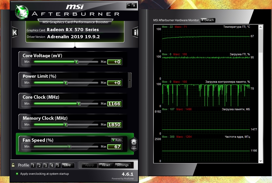 Q: По мониторингу напряжение на GPU немного отличается от установленного. A: Реально напряжение выставляется кратно 6.25 и округляется в большую сторону. То есть, если Вы выставили 1137, то реально у Вас будет 1137.5, а если выставили 1138, то уже реально будет 1143.75 мВ.